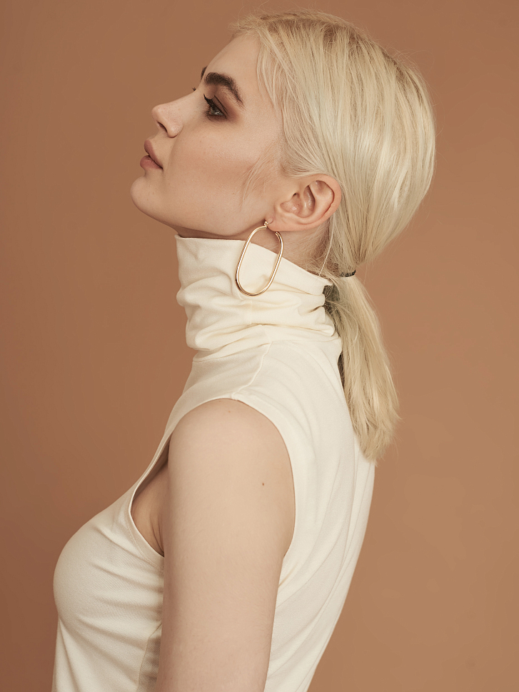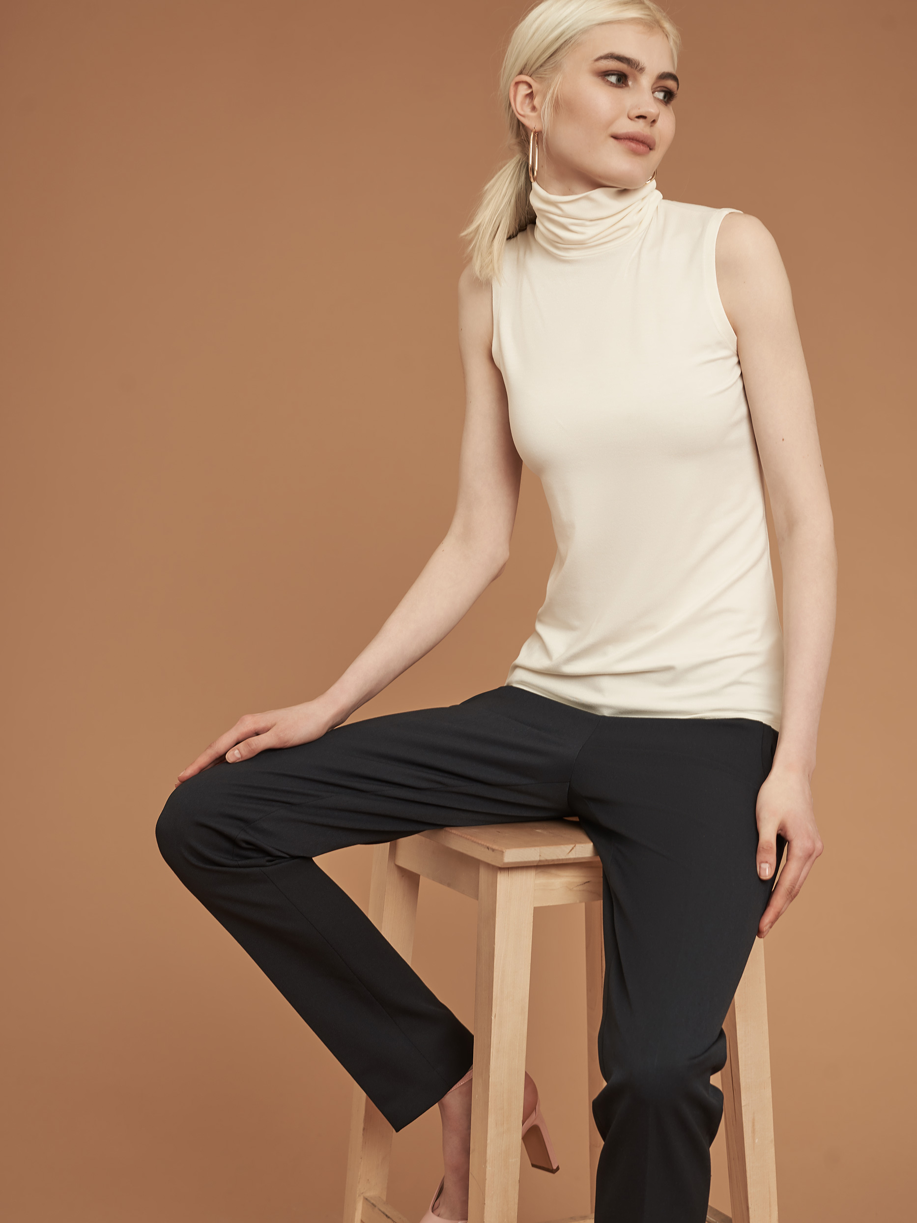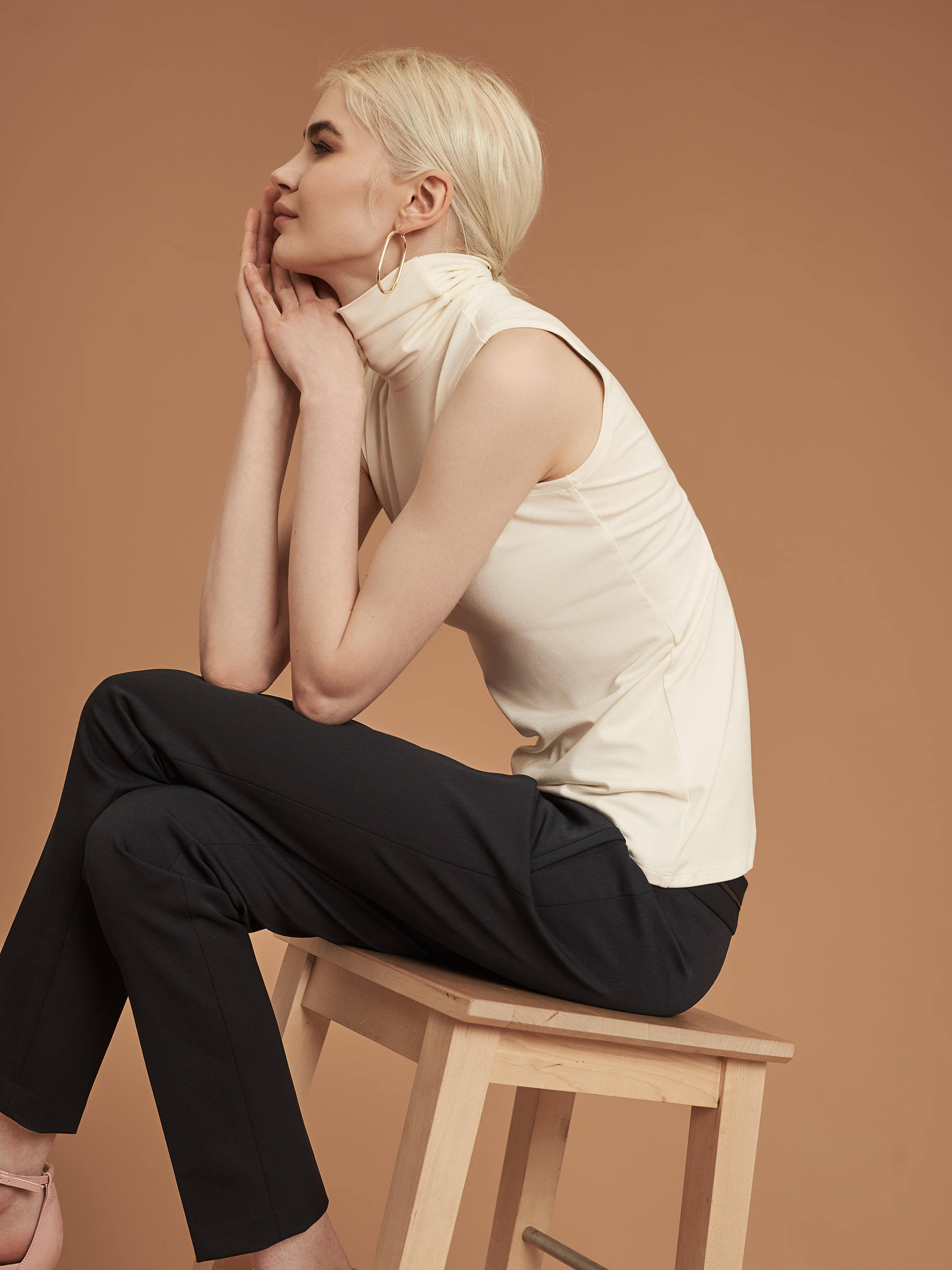 Топ, выполненный из смесовой вискозы. Облегающий крой, воротник-хомут.