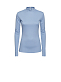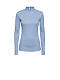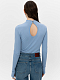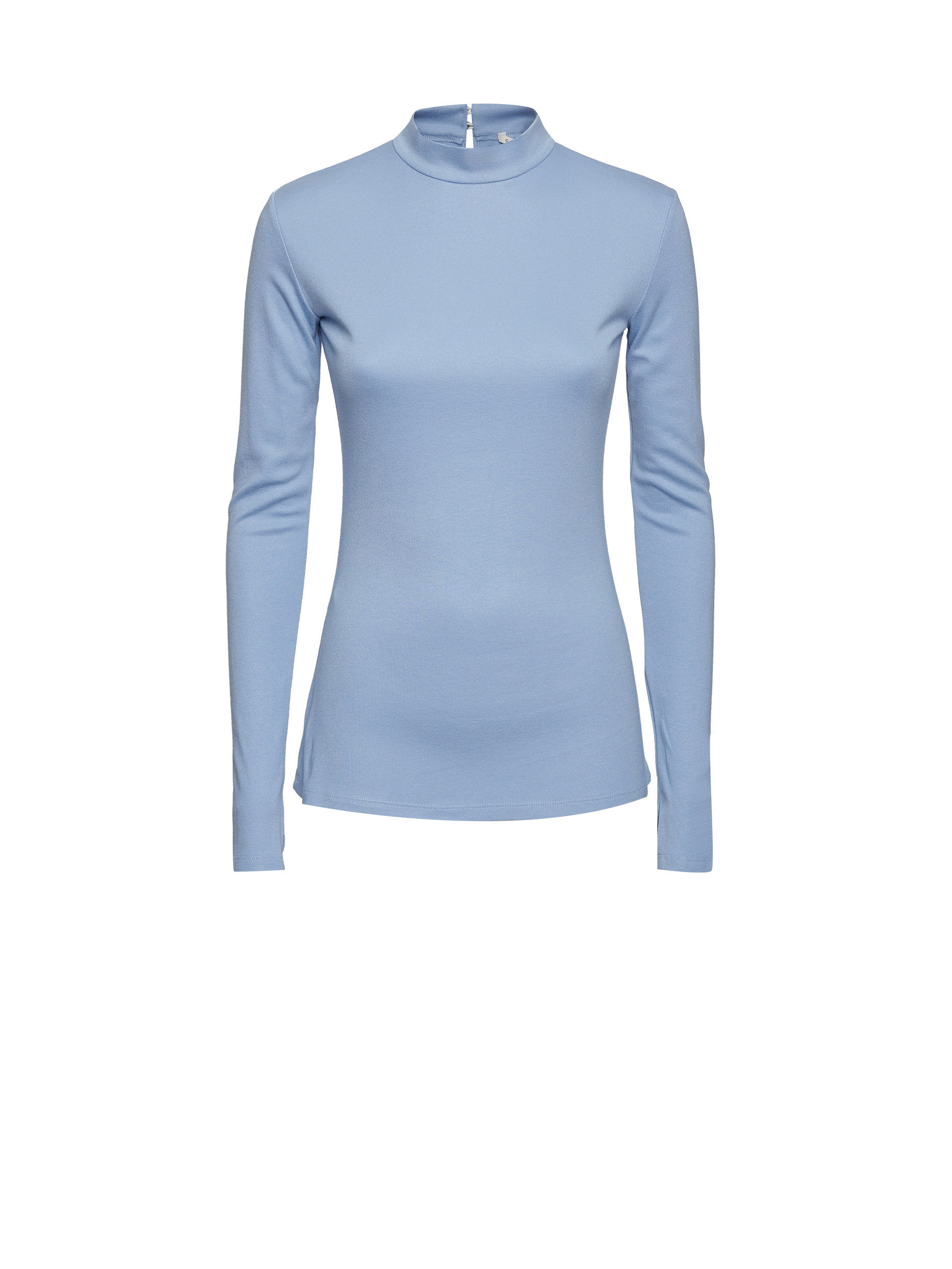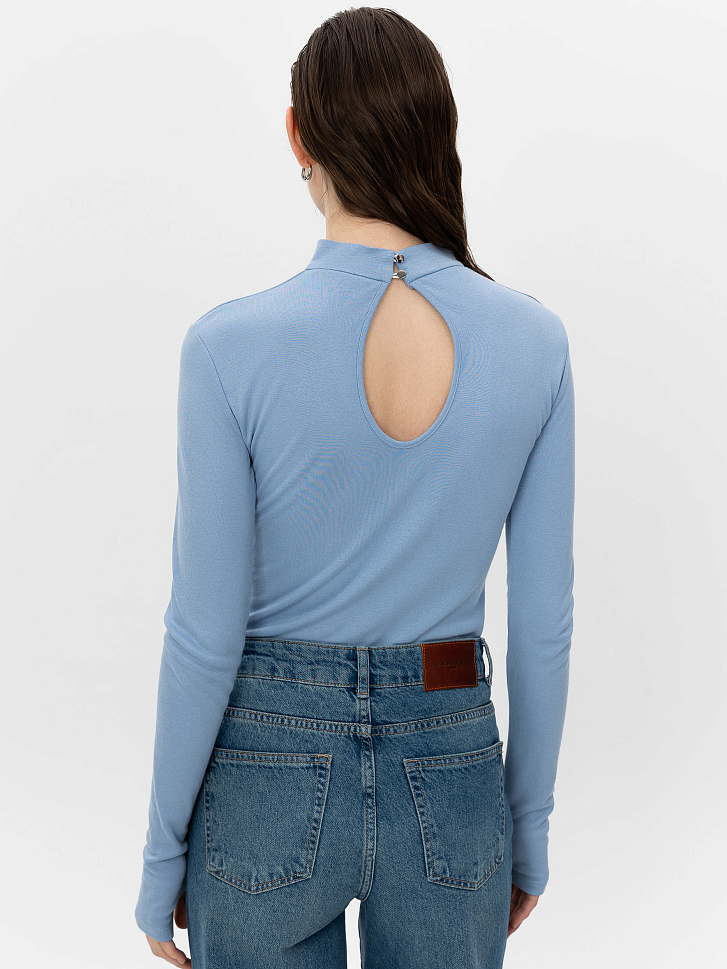 Однотонный трикотажный лонгслив. Облегающий крой, воротник-стойка, длинные рукава с отверстиями для больших пальцев, вырез на спине.