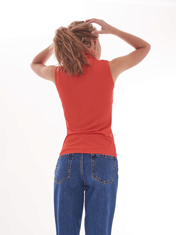 Топ, выполненный из смесовой вискозы. Облегающий крой, воротник-хомут.