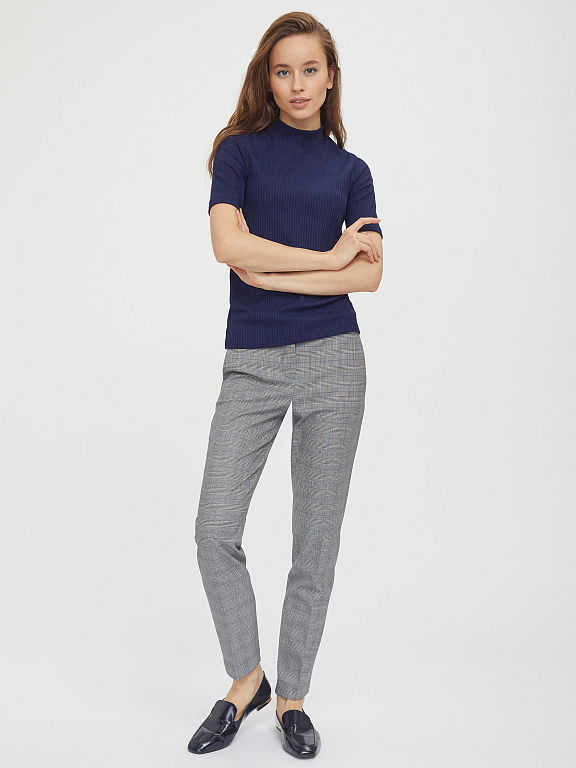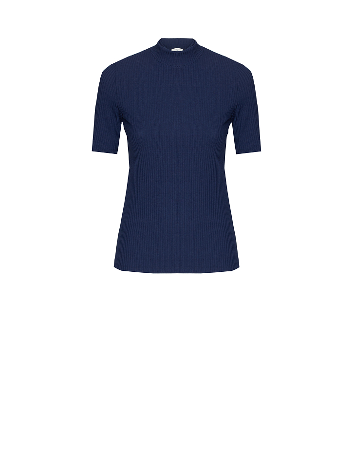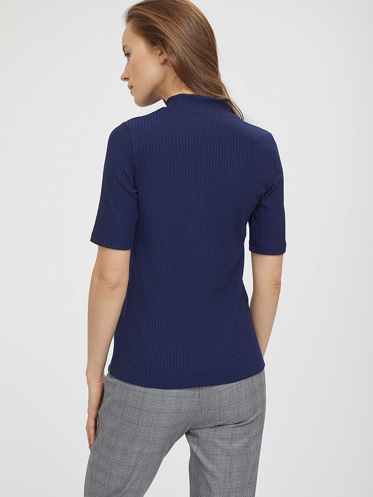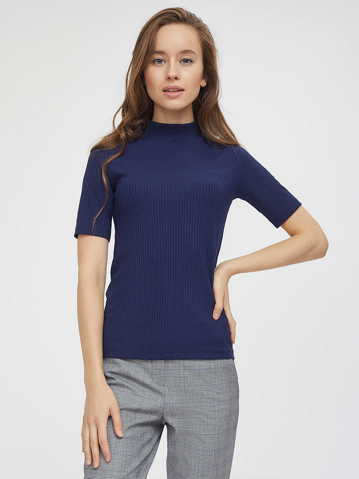 Джемпер, выполненный из мягкого трикотажа. Воротник-стойка, полуприлегающий силуэт, короткие рукава.