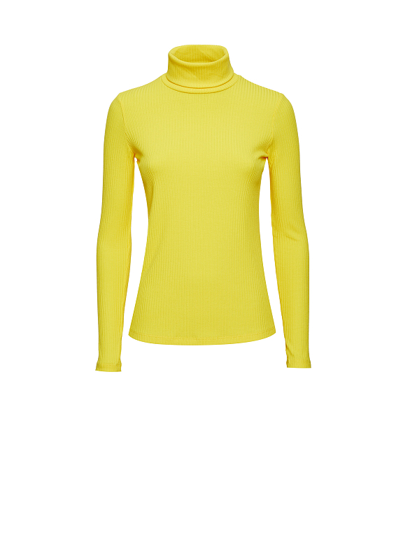 Водолазка в рубчик. Облегающий силуэт, высокий воротник, длинные рукава с отверстиями для больших пальцев.