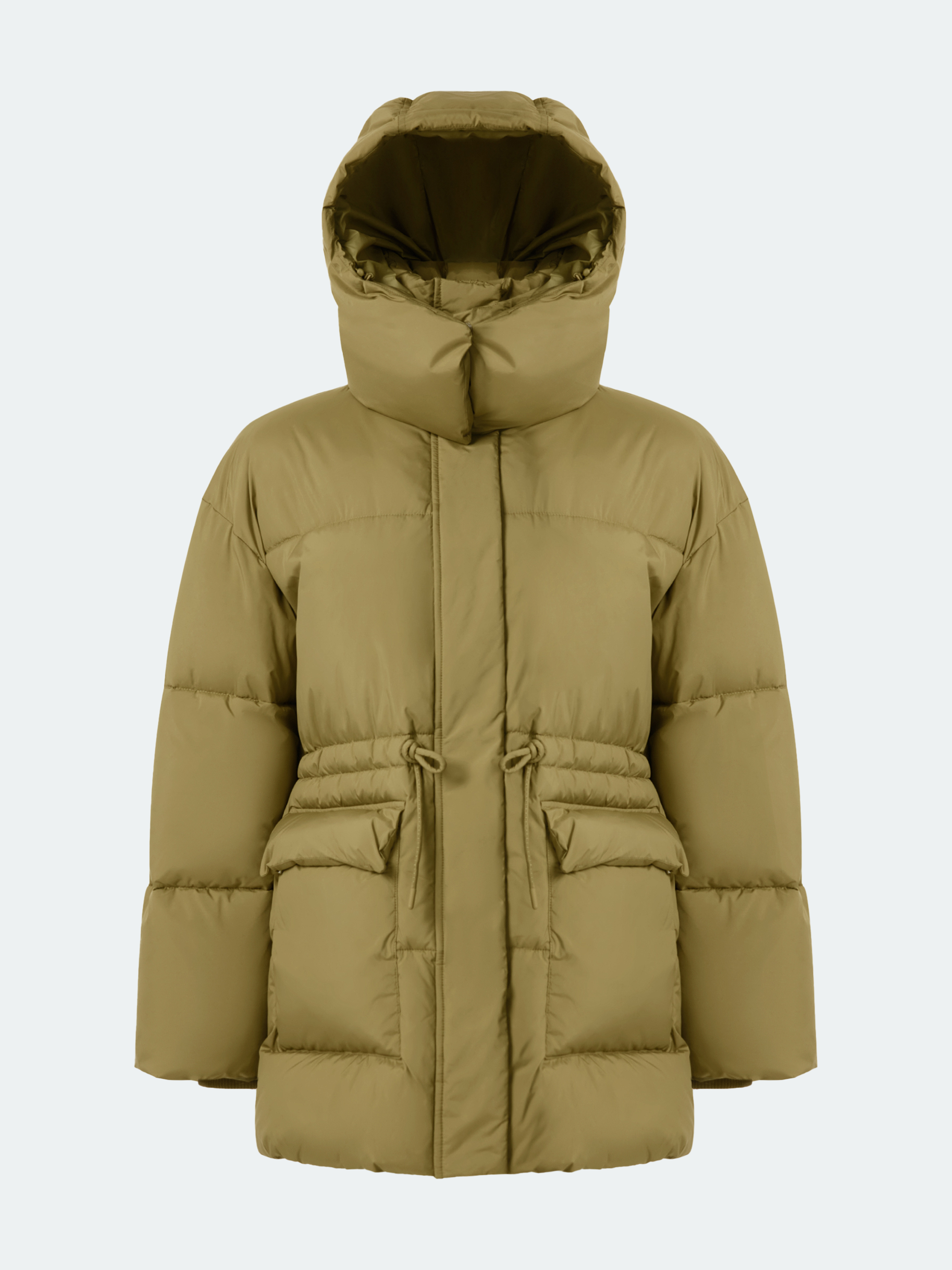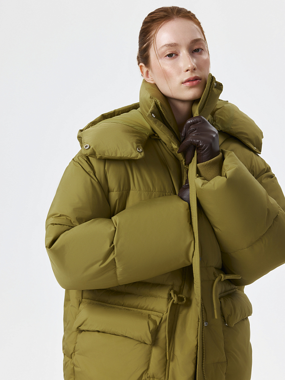 Куртка оверсайз для теплых образов в стиле элегантный outdoor. Инновационный утеплитель Sorona по теплоизоляции не уступает натуральному пуху, при этом не впитывает запахи и не комкается. К тому же, такой наполнитель легкий, поэтому зимняя куртка имеет меньший вес. Свободный крой позволяет надеть дополнительным слоем толстовку или теплый свитер, а кулиска при необходимости сформирует приталенный силуэт. Капюшон защитит от ветра или при желании эту деталь можно отстегнуть.