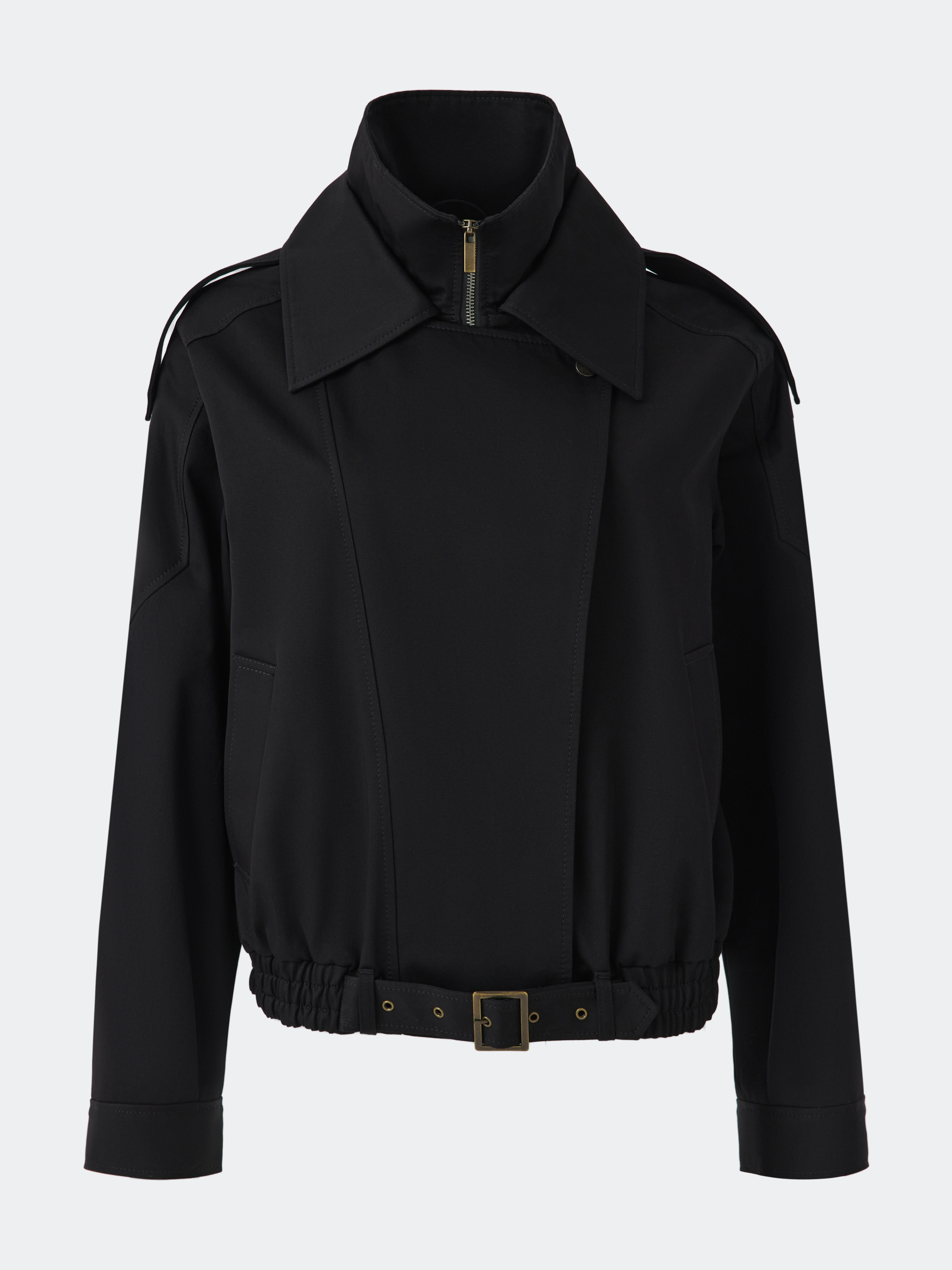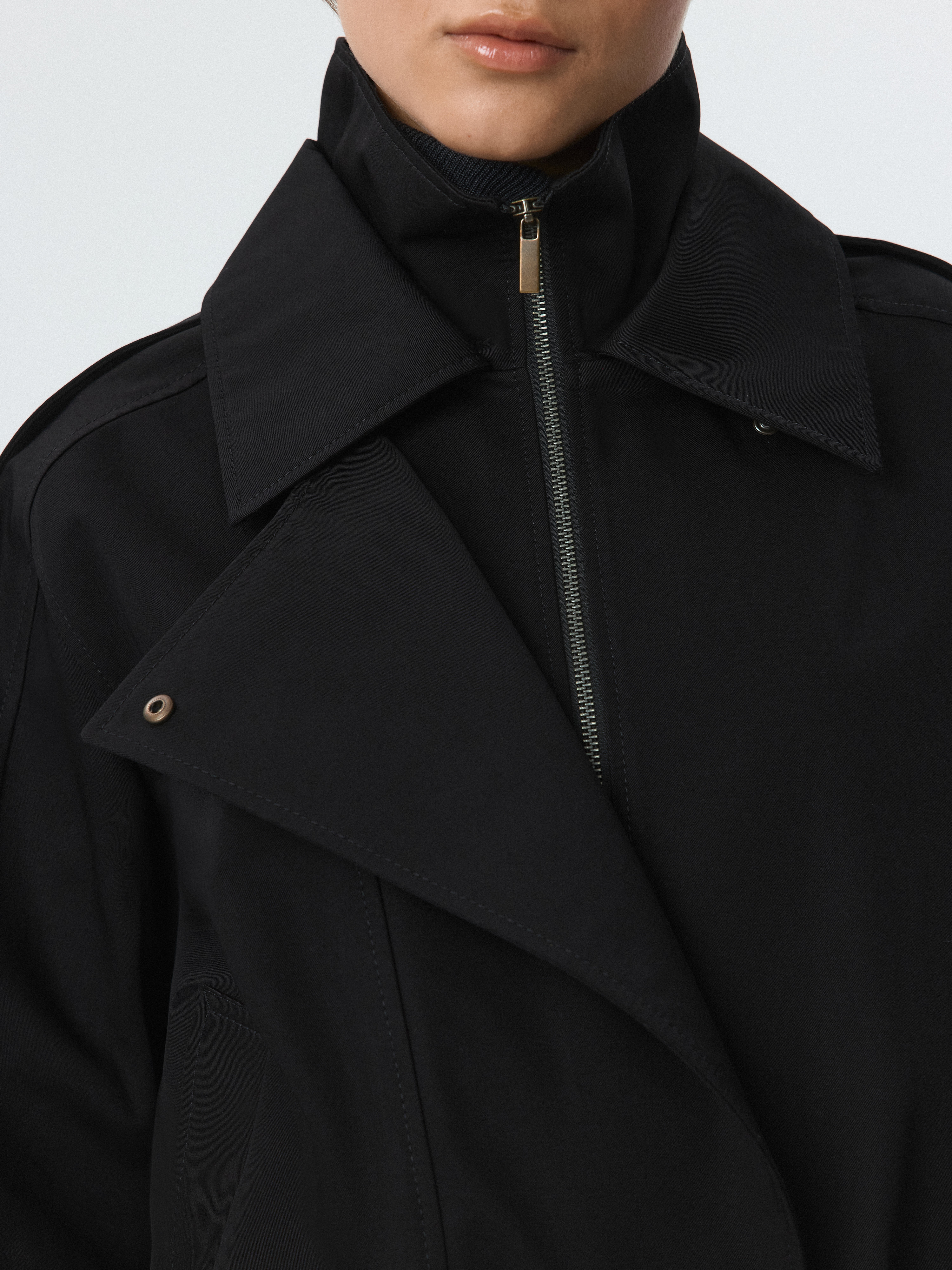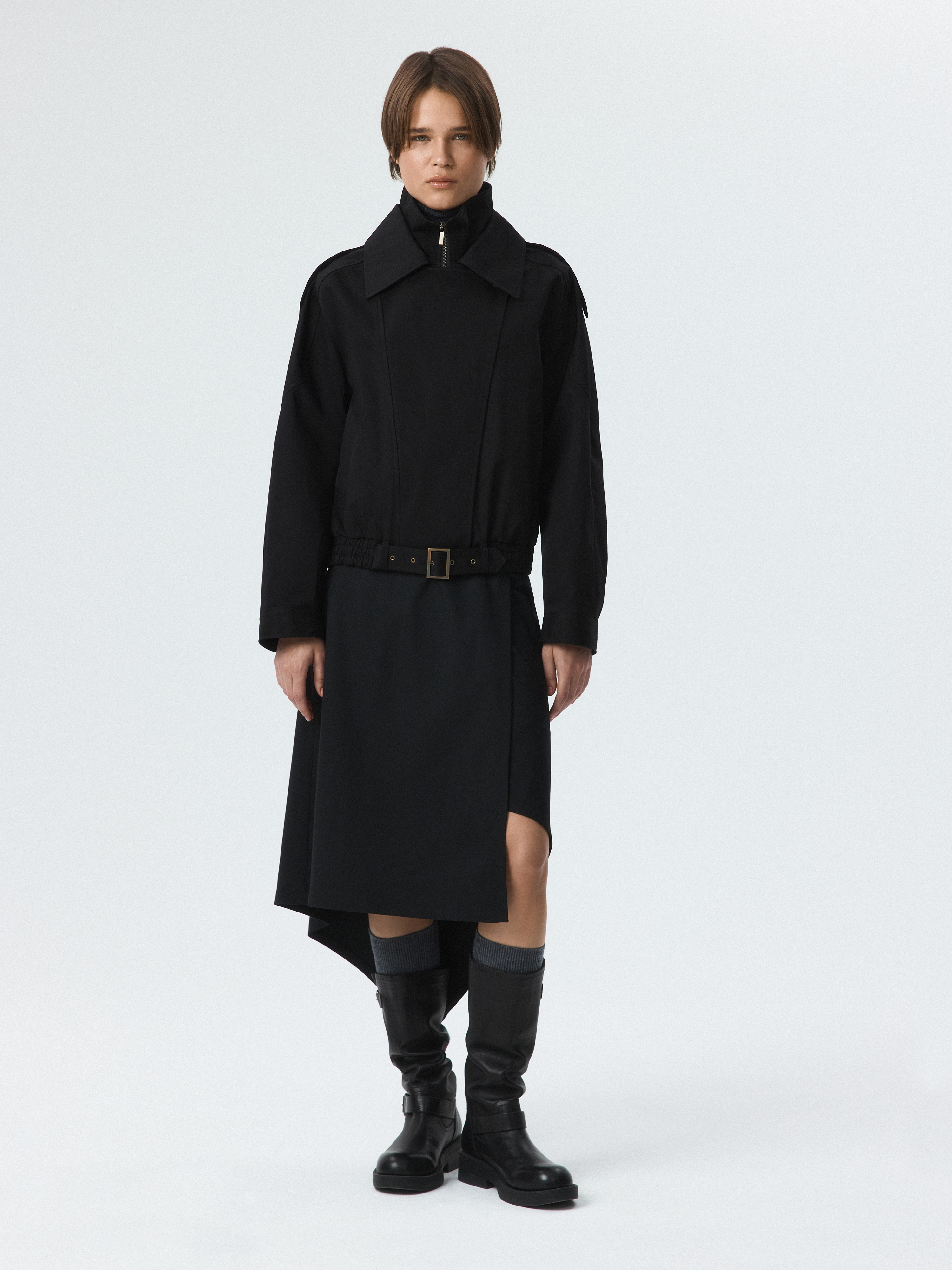 Куртка объемного фасона – практичная модель на демисезон. Плотный габардиновый текстиль из хлопка не продувается и хорошо держит форму, а специальная пропитка отталкивает от поверхности капли. Воротник-стойка дополнительно укроет от ветра. Свободная куртка со спущенной линией плеча расслабленно сидит по фигуре.
