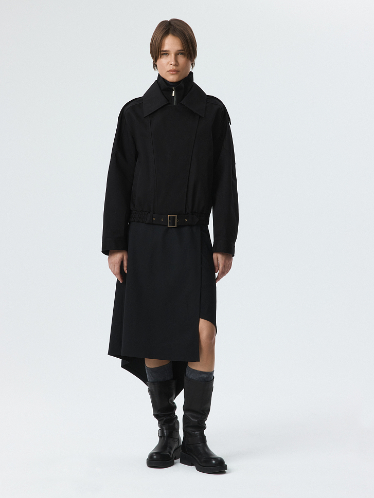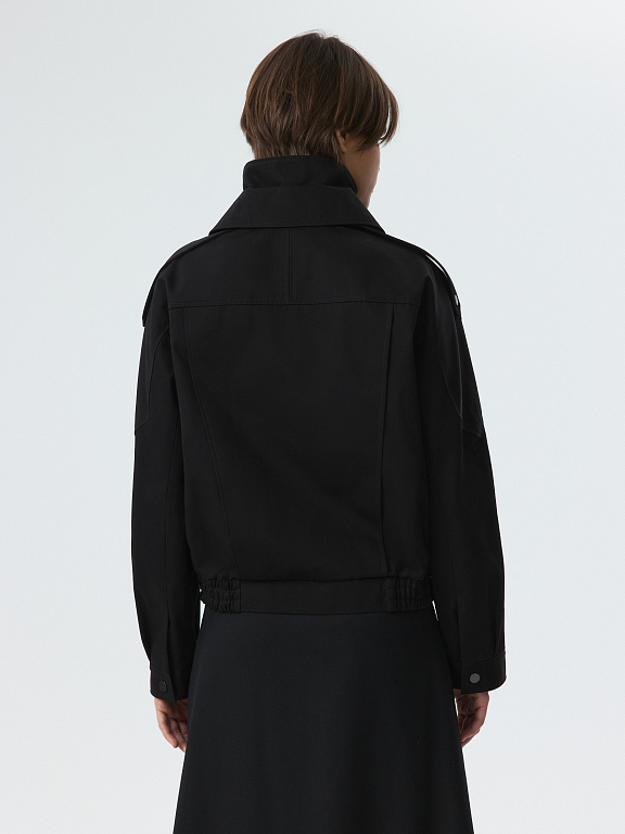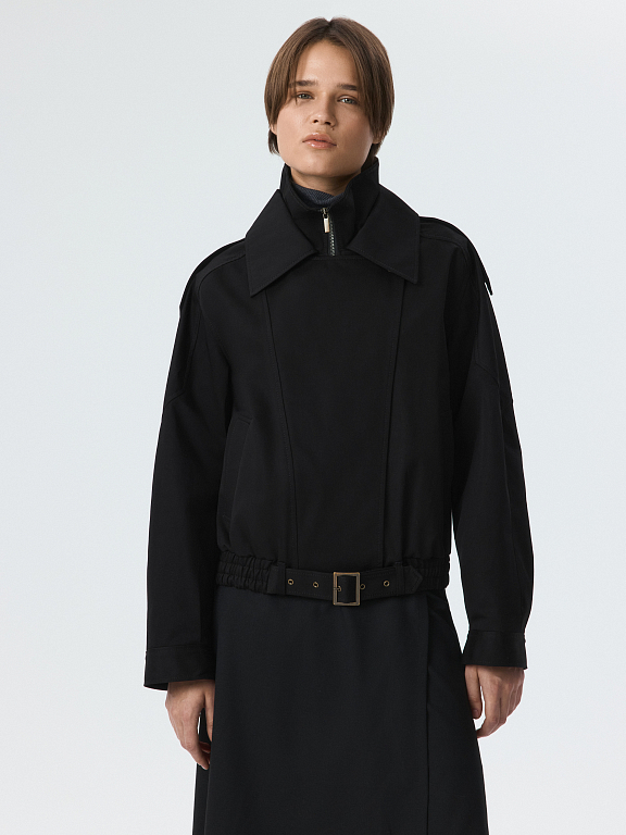Куртка фасона оверсайз – практичная модель на демисезон. Плотный габардиновый текстиль из хлопка не продувается и хорошо держит форму, а специальная пропитка отталкивает от поверхности капли. Воротник-стойка дополнительно укроет от ветра. Свободная куртка со спущенной линией плеча расслабленно сидит по фигуре.