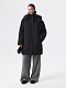 Удлиненная куртка фасона оверсайз сочетается с любыми образами. Драповый текстиль с содержанием шерсти не продувается, а плотный слой искусственного наполнителя сохраняет тепло. Высокий трикотажный воротник и съемный капюшон дополнительно защищают от ветра.