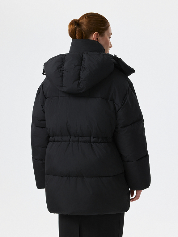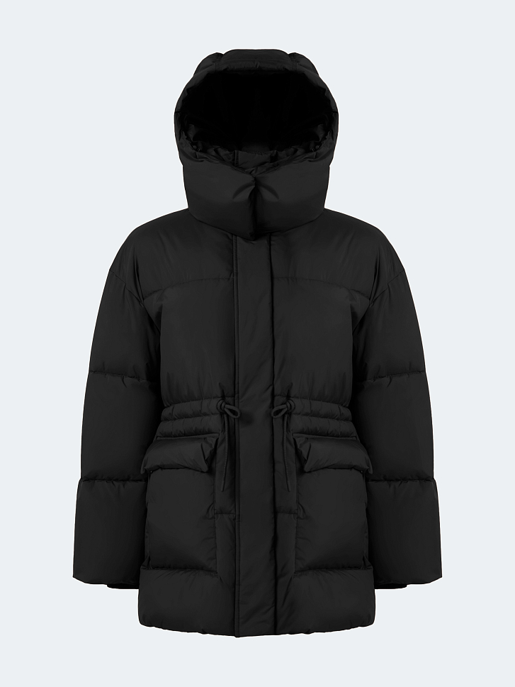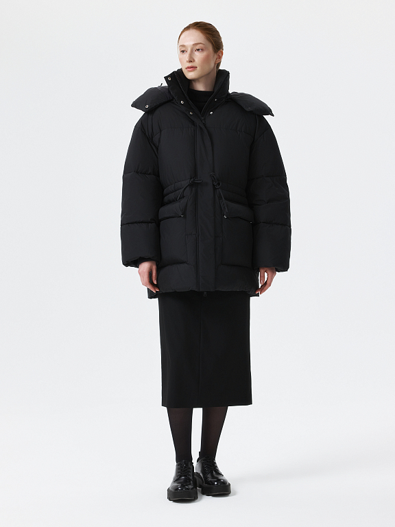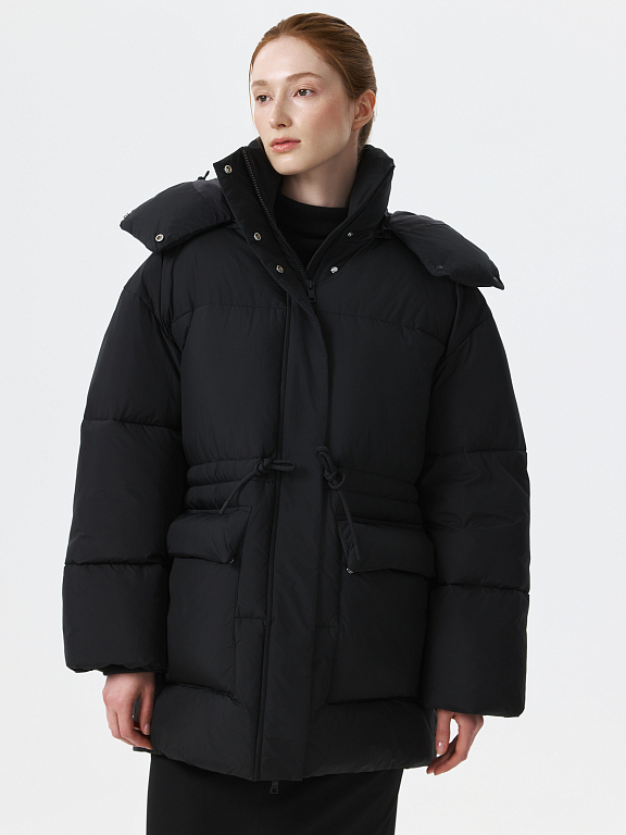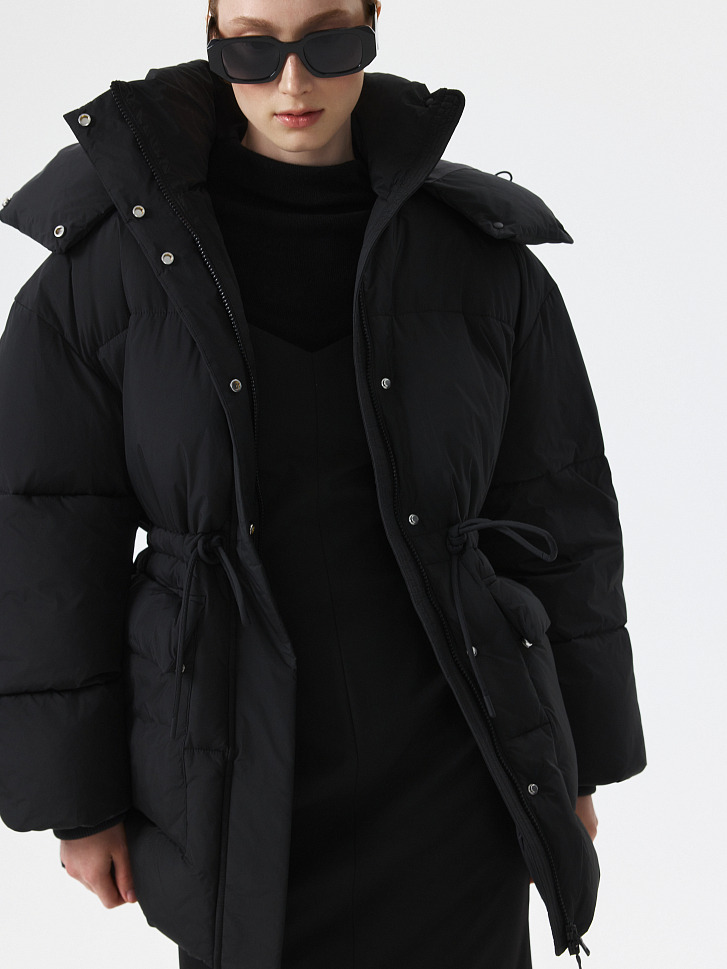 Куртка оверсайз для теплых образов в стиле элегантный outdoor. Инновационный утеплитель Sorona по теплоизоляции не уступает натуральному пуху, при этом не впитывает запахи и не комкается. К тому же, такой наполнитель легкий, поэтому зимняя куртка имеет меньший вес. Свободный крой позволяет надеть дополнительным слоем толстовку или теплый свитер, а кулиска при необходимости сформирует приталенный силуэт. Капюшон защитит от ветра или при желании эту деталь можно отстегнуть.