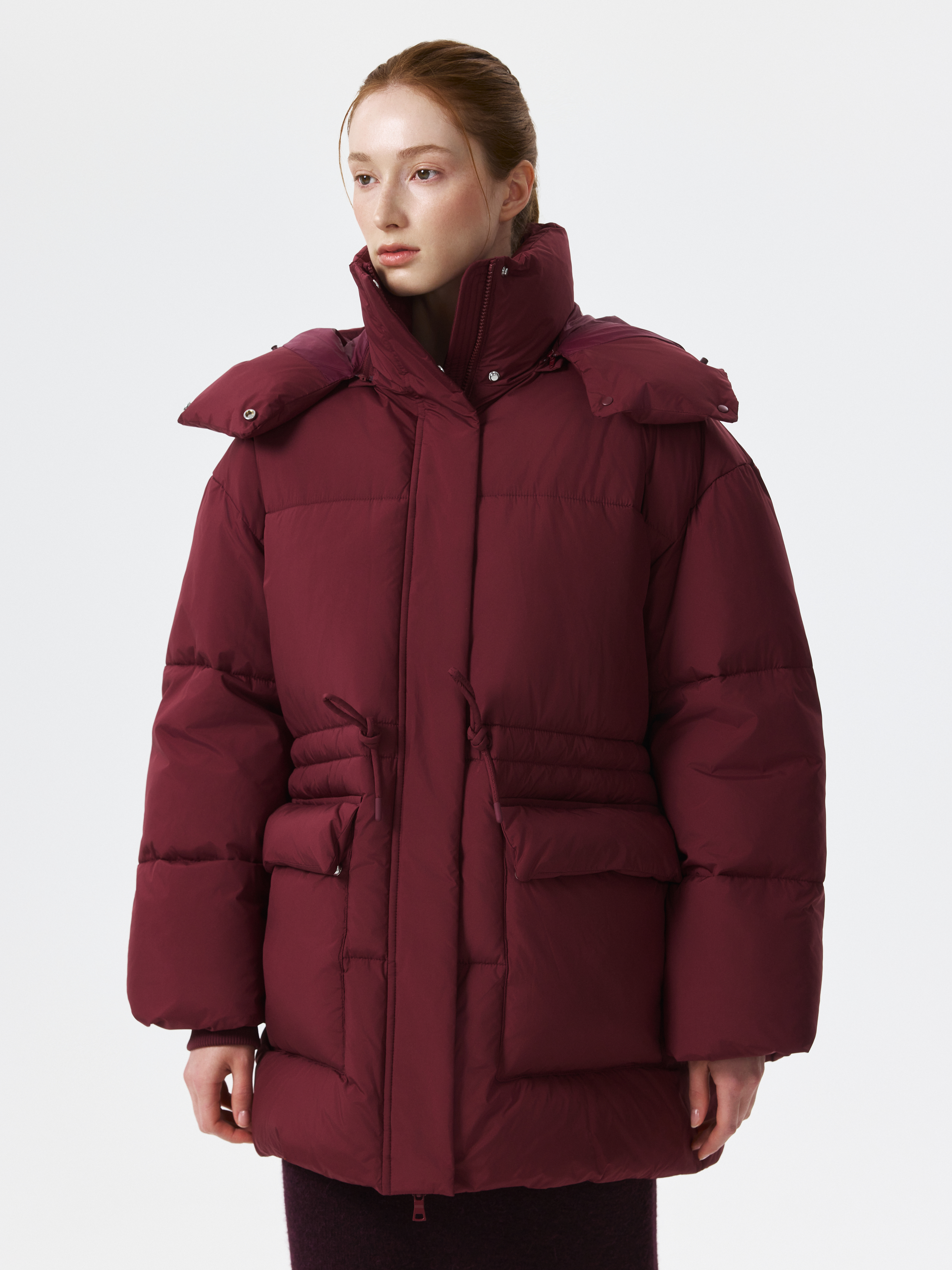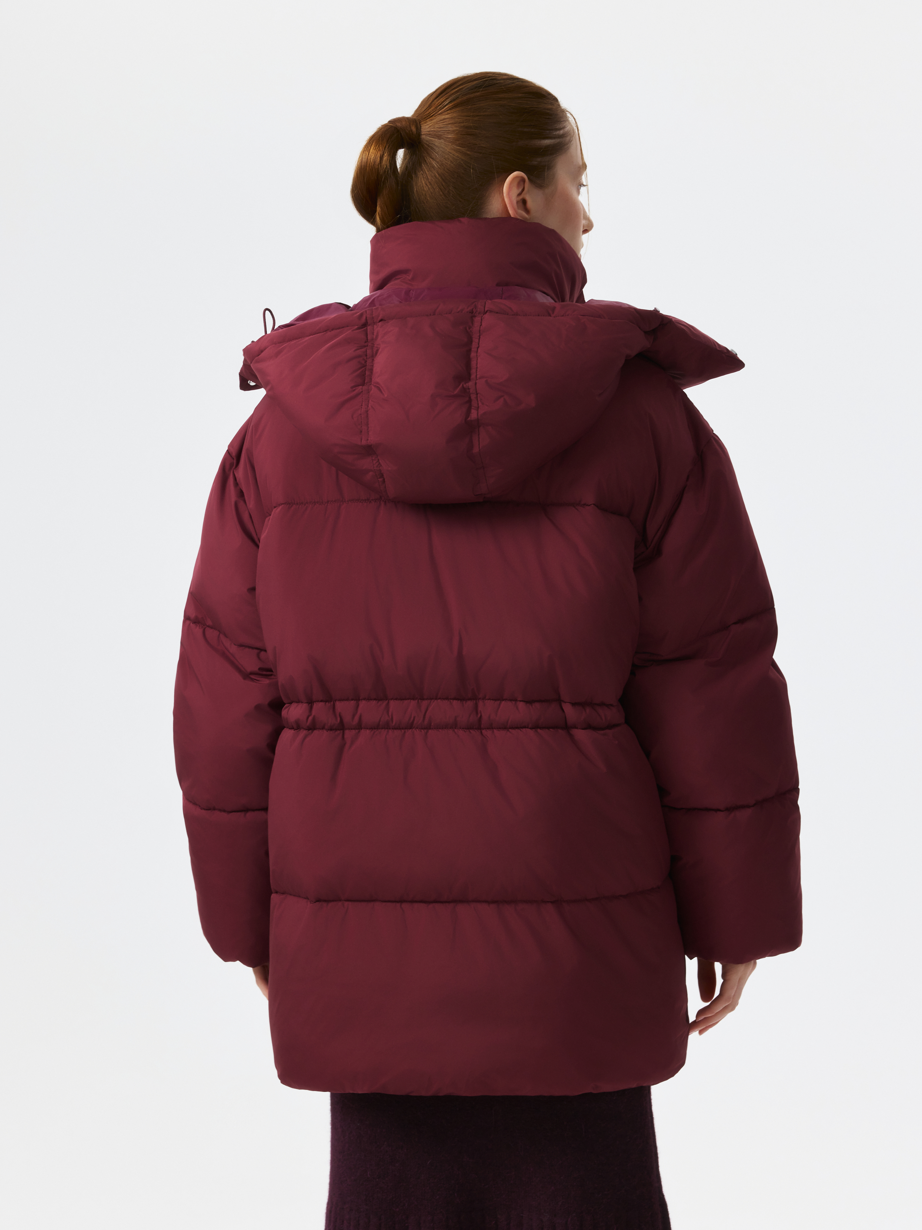 Куртка оверсайз для теплых образов в стиле элегантный outdoor. Инновационный утеплитель Sorona по теплоизоляции не уступает натуральному пуху, при этом не впитывает запахи и не комкается. К тому же, такой наполнитель легкий, поэтому зимняя куртка имеет меньший вес. Свободный крой позволяет надеть дополнительным слоем толстовку или теплый свитер, а кулиска при необходимости сформирует приталенный силуэт. Капюшон защитит от ветра или при желании эту деталь можно отстегнуть.