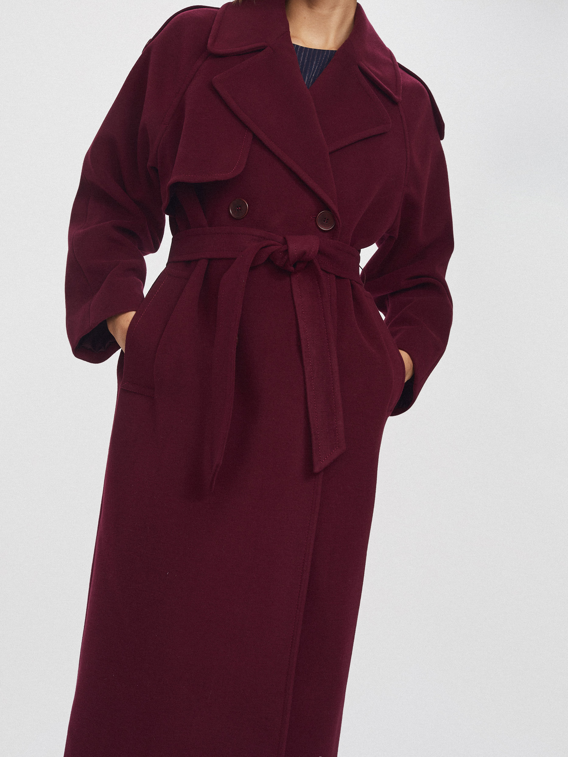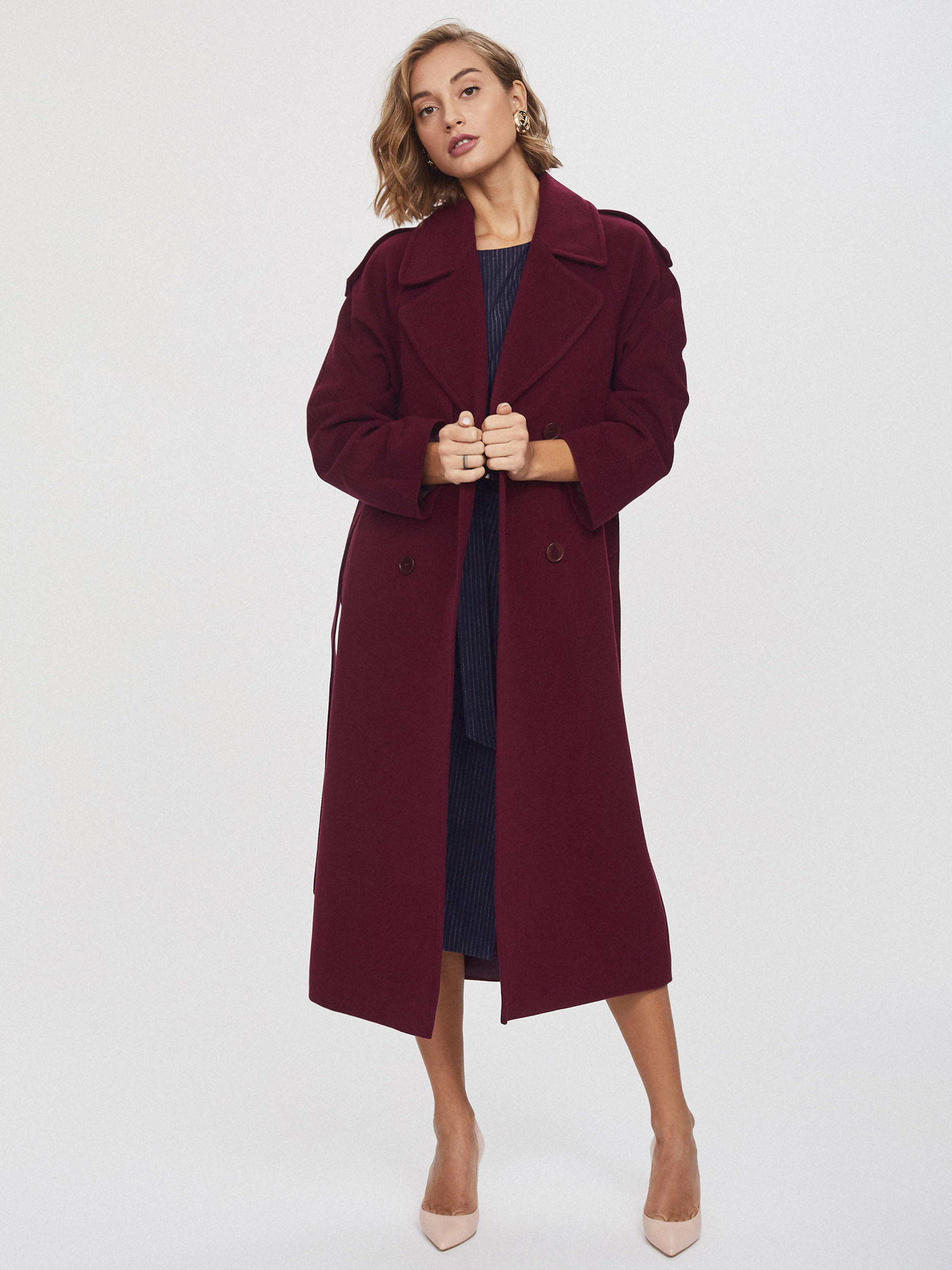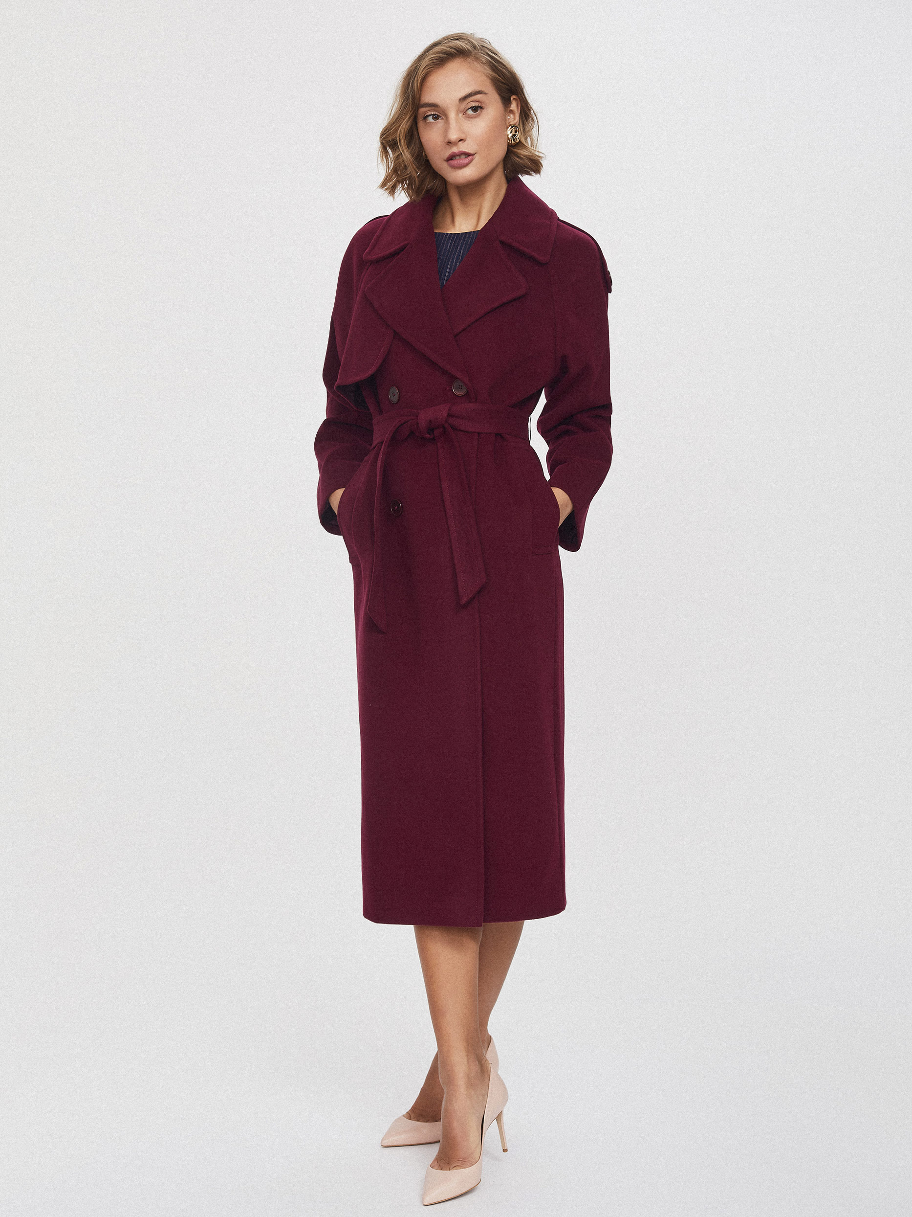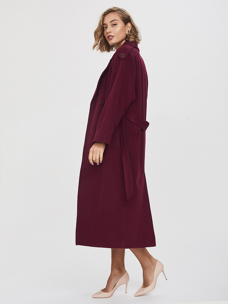 Двубортное пальто с поясом