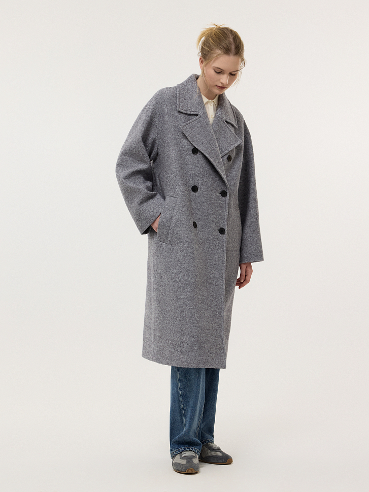 Двубортное пальто со спущенной линией плеча создаст расслабленный демисезонный образ. Модель теплая, потому что содержит натуральную шерсть, но при этом мягкая и легкая без утяжеления. Пальто кроя оверсайз обеспечивает максимальную свободу движений.