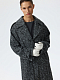 Меланжевое пальто из букле «в елочку» – идеальный выбор для прохладных дней межсезонья. Модель теплая, потому что содержит натуральную шерсть, но при этом мягкая и легкая. Пальто с застежкой на кнопки создает расслабленный силуэт. Заниженную линию плеч подчеркнули погонами, манжеты – патами, а талию можно акцентировать поясом.