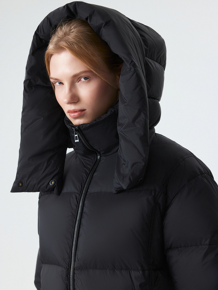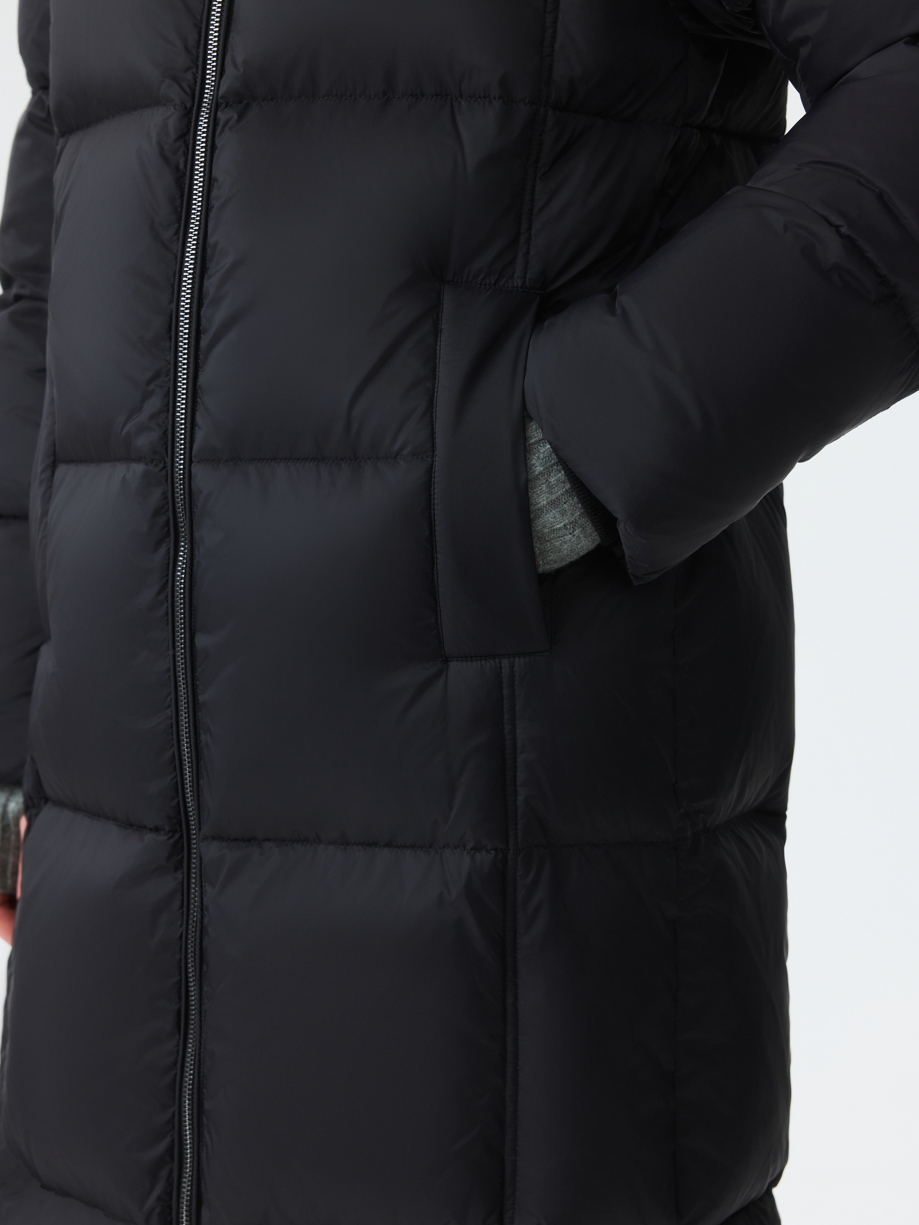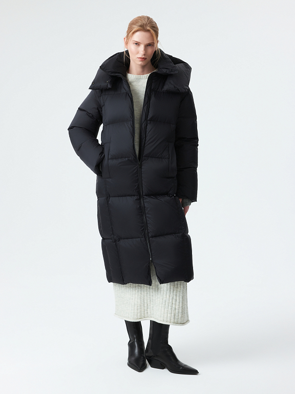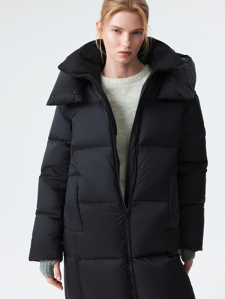 Длинный пуховик станет незаменимым предметом зимнего гардероба, который легко сочетать даже с платьями и юбками. Модель утеплена натуральным утиным пухом и пером, которые предотвращают проникновение холода внутрь и удерживают тепло тела, при этом сохраняя легкость. Ткань верха обладает водоотталкивающими свойствами благодаря специальной пропитке. Съемный капюшон и трикотажные манжеты дополнительно защитят от продувания.