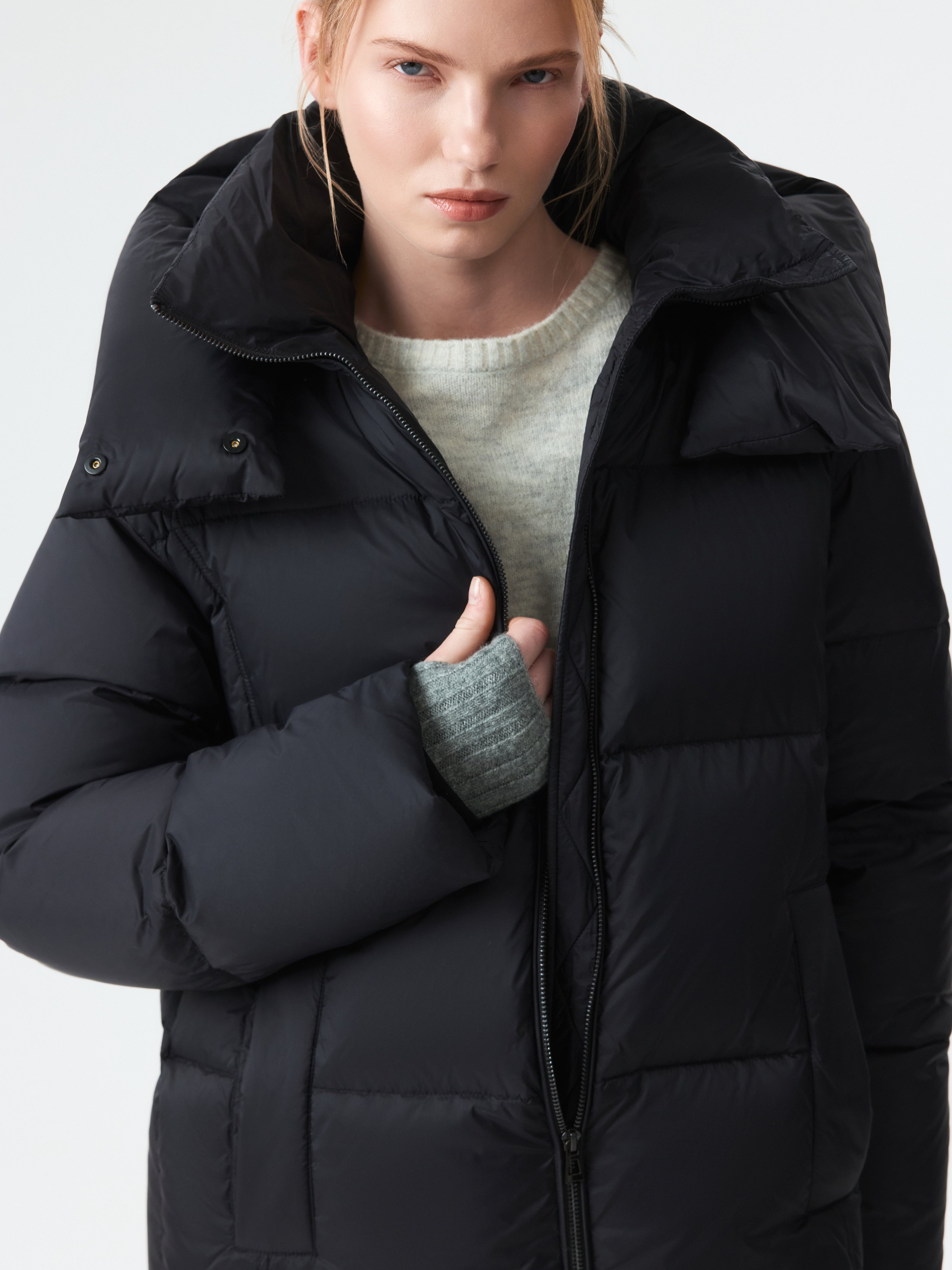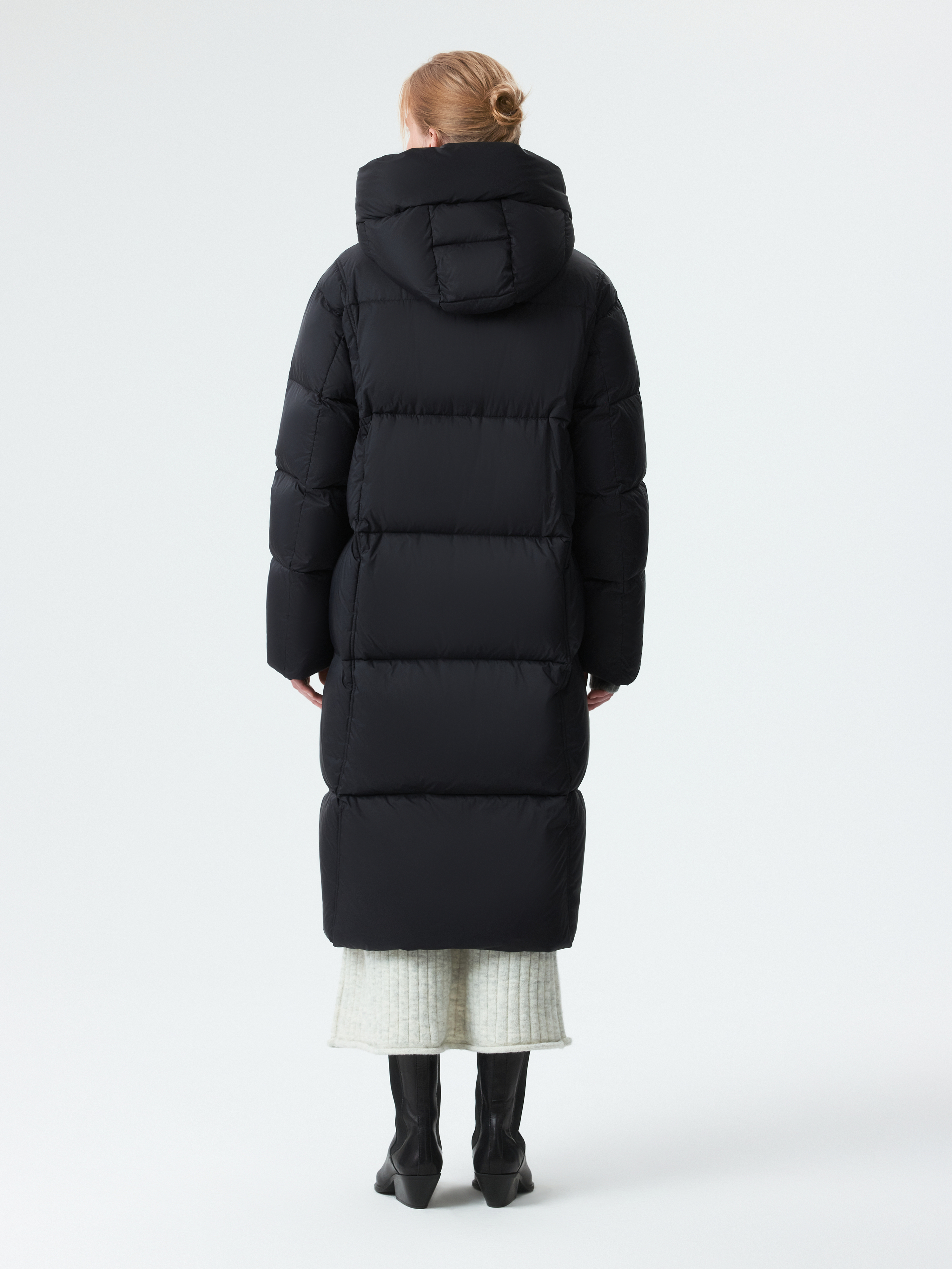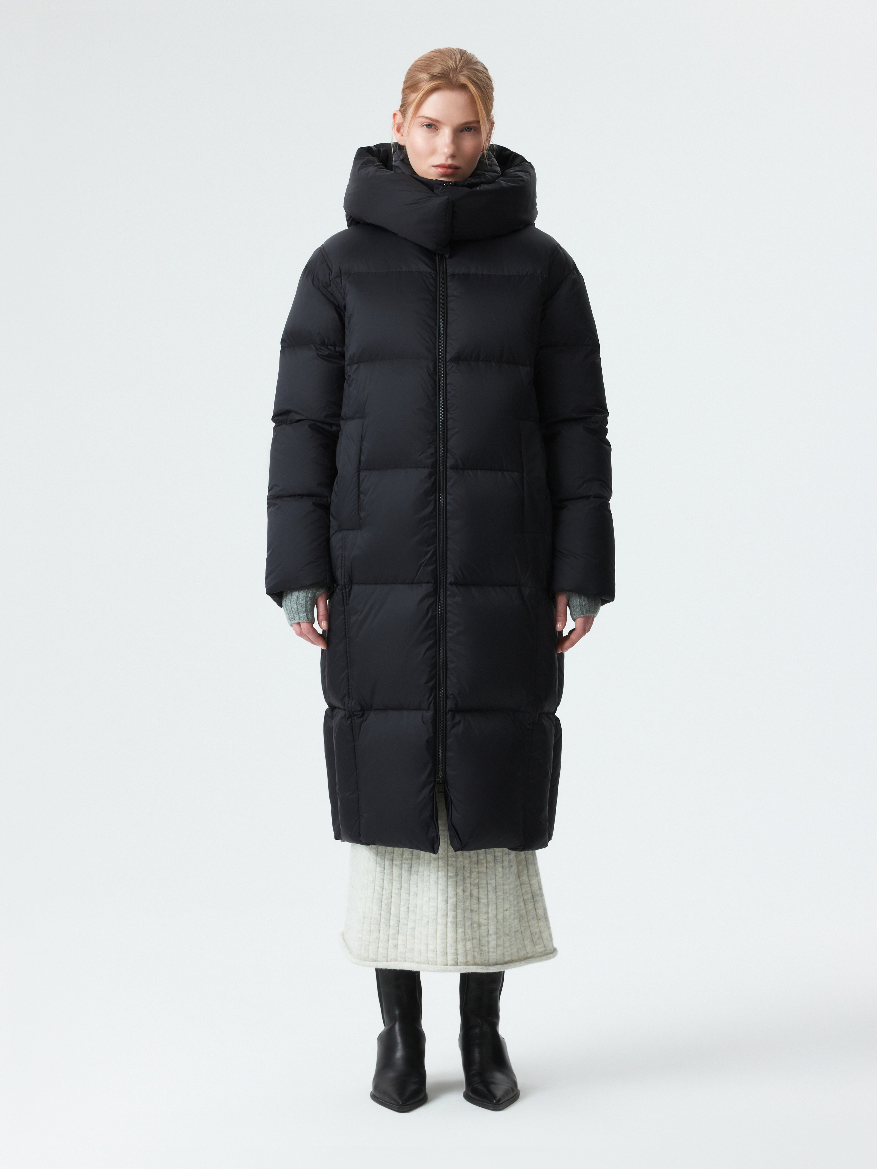 Длинный пуховик станет незаменимым предметом зимнего гардероба, который легко сочетать даже с платьями и юбками. Модель утеплена натуральным утиным пухом и пером, которые предотвращают проникновение холода внутрь и удерживают тепло тела, при этом сохраняя легкость. Ткань верха обладает водоотталкивающими свойствами благодаря специальной пропитке. Съемный капюшон и трикотажные манжеты дополнительно защитят от продувания.