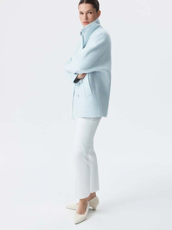 Классический крой и пастельная расцвета делают это полупальто одновременно элегантным и женственным. Плотный ворсистый текстиль на основе шерсти согревает и комфортно прилегает даже без подкладки, а искусственные волокна придают износоустойчивости. Изделие выполнено по технологии double face, поэтому выглядит также безупречно с изнанки.