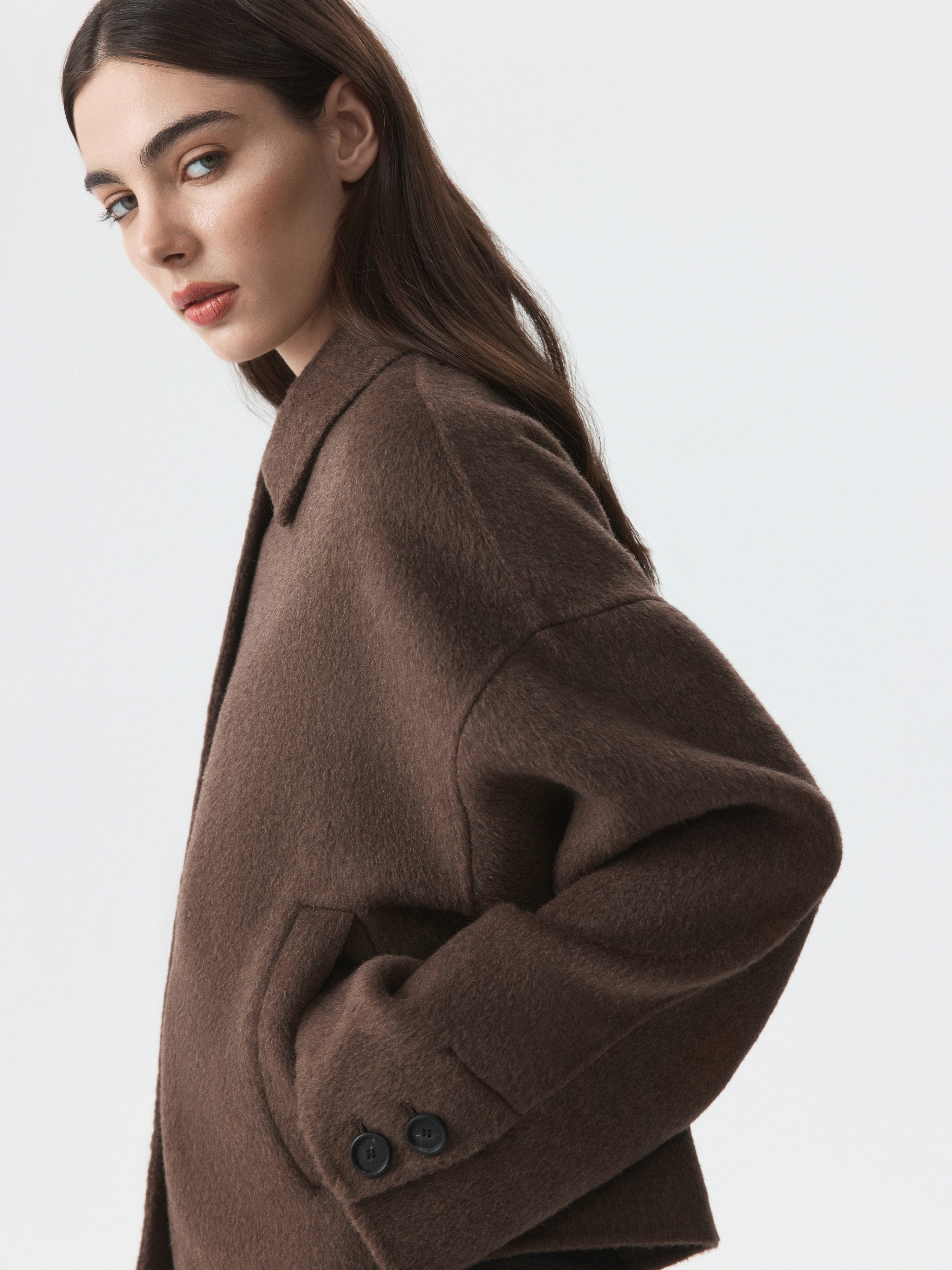 Куртка из пальтовой ткани – стильный выбор для прохладной погоды. Плотный ворсистый текстиль на основе шерсти согревает и комфортно прилегает даже без подкладки. Изделие выполнено по технологии double face, поэтому выглядит безупречно с изнанки. Такая модель сочетается как с классическими образами, так и с джинсами.