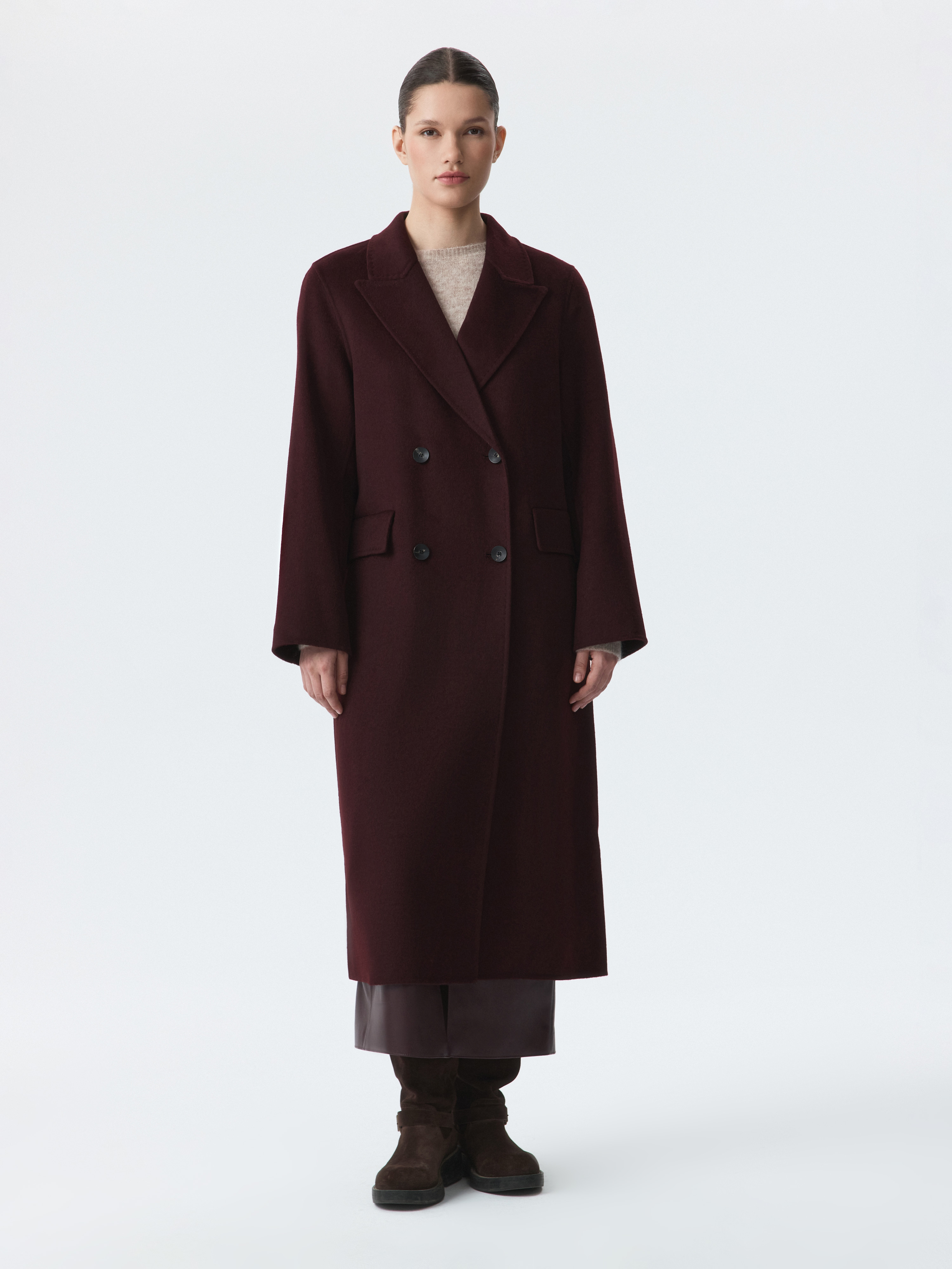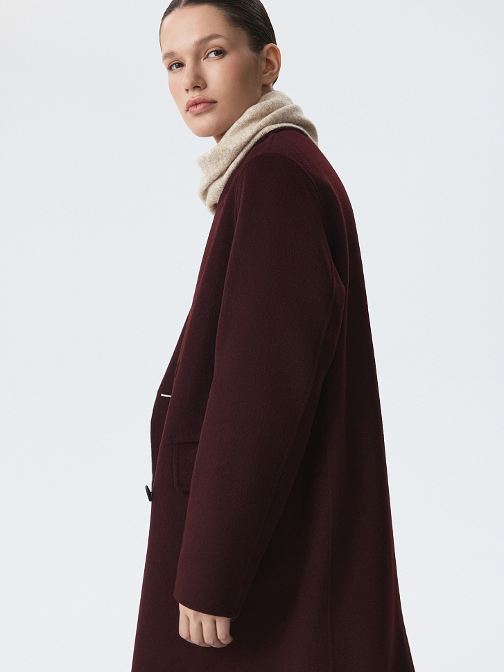 Длинное двубортное пальто – универсальная модель для межсезонья. Плотный ворсистый текстиль на основе шерсти согревает и комфортно прилегает даже без подкладки, а искусственные волокна придают износоустойчивости. Изделие выполнено по технологии double face, поэтому выглядит также безупречно с изнанки.