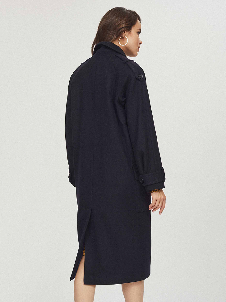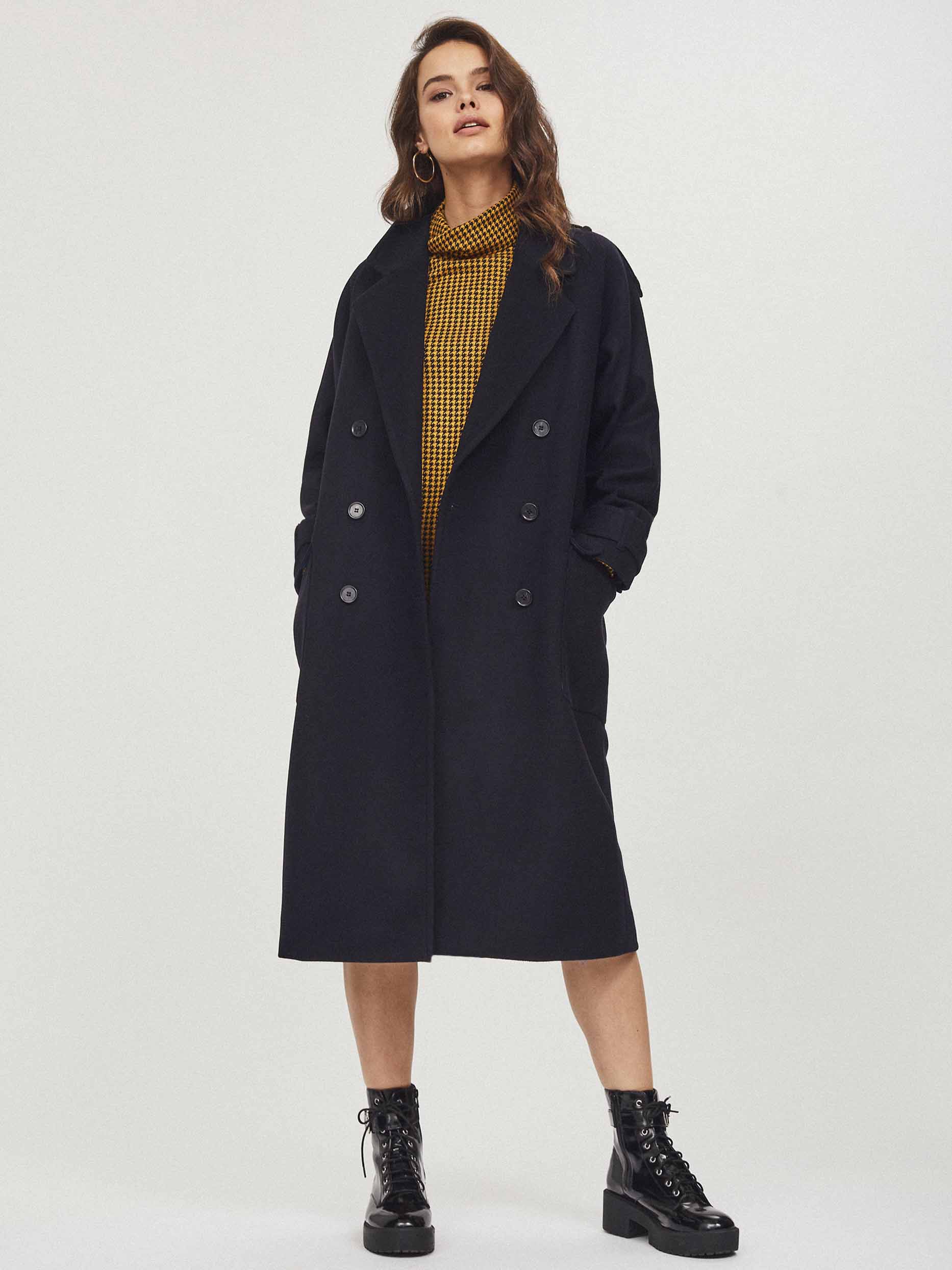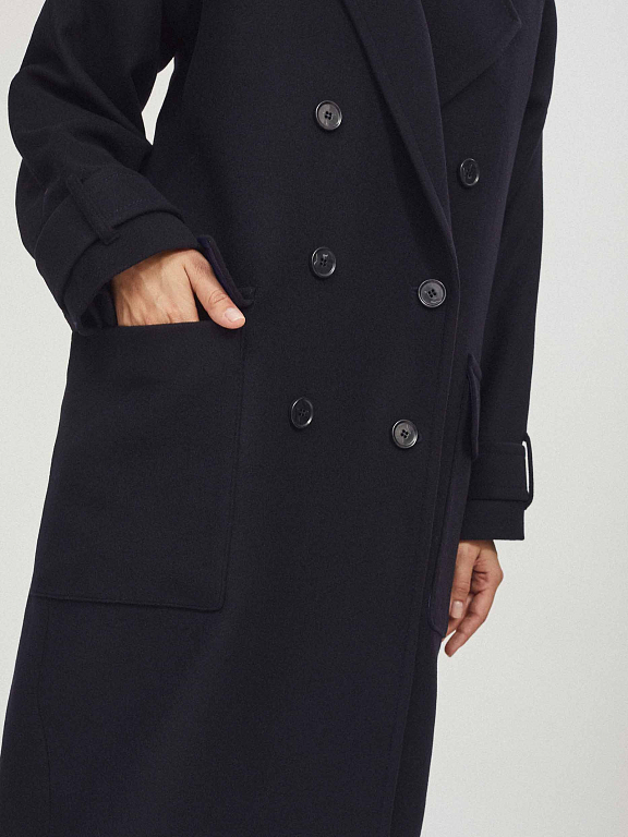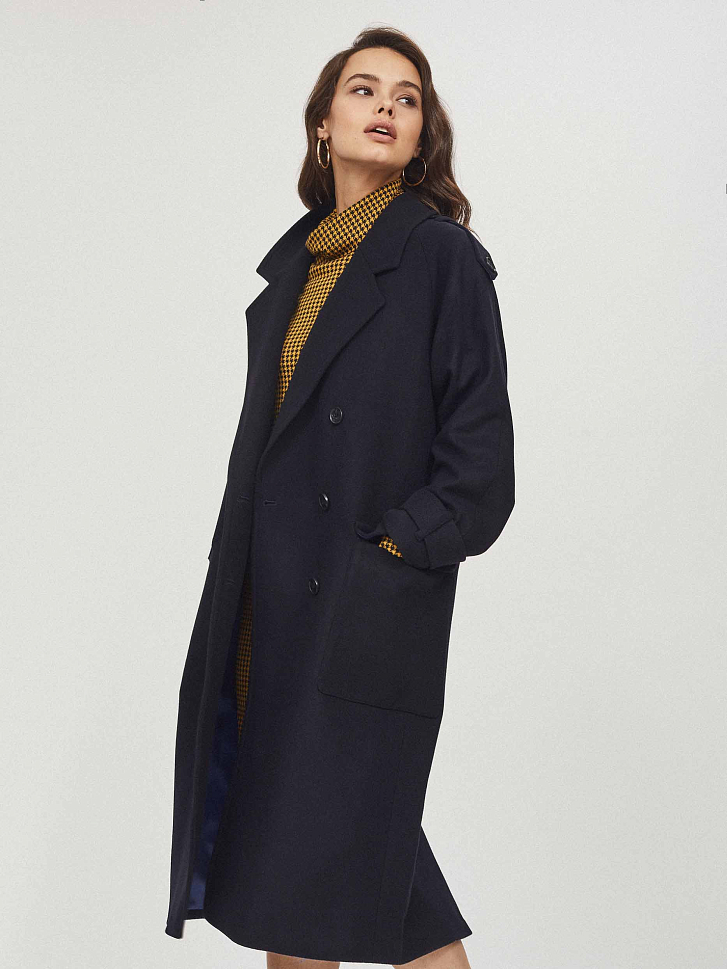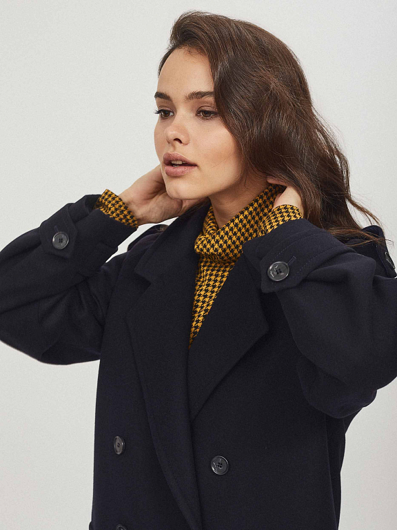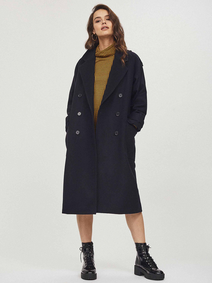 Пальто в стиле оверсайз, выполненное из смесовой шерсти. Свободный крой, лацканы, декоративные эполеты и ремешки на рукавах в тон. Крупные накладные карманы с клапанами, шлица. Застегивается на два ряда пуговиц мраморной расцветки. Изделие на подкладке из смесовой вискозы.
