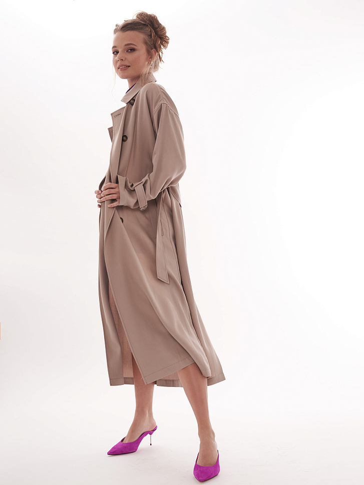 Двубортный тренч с поясом
