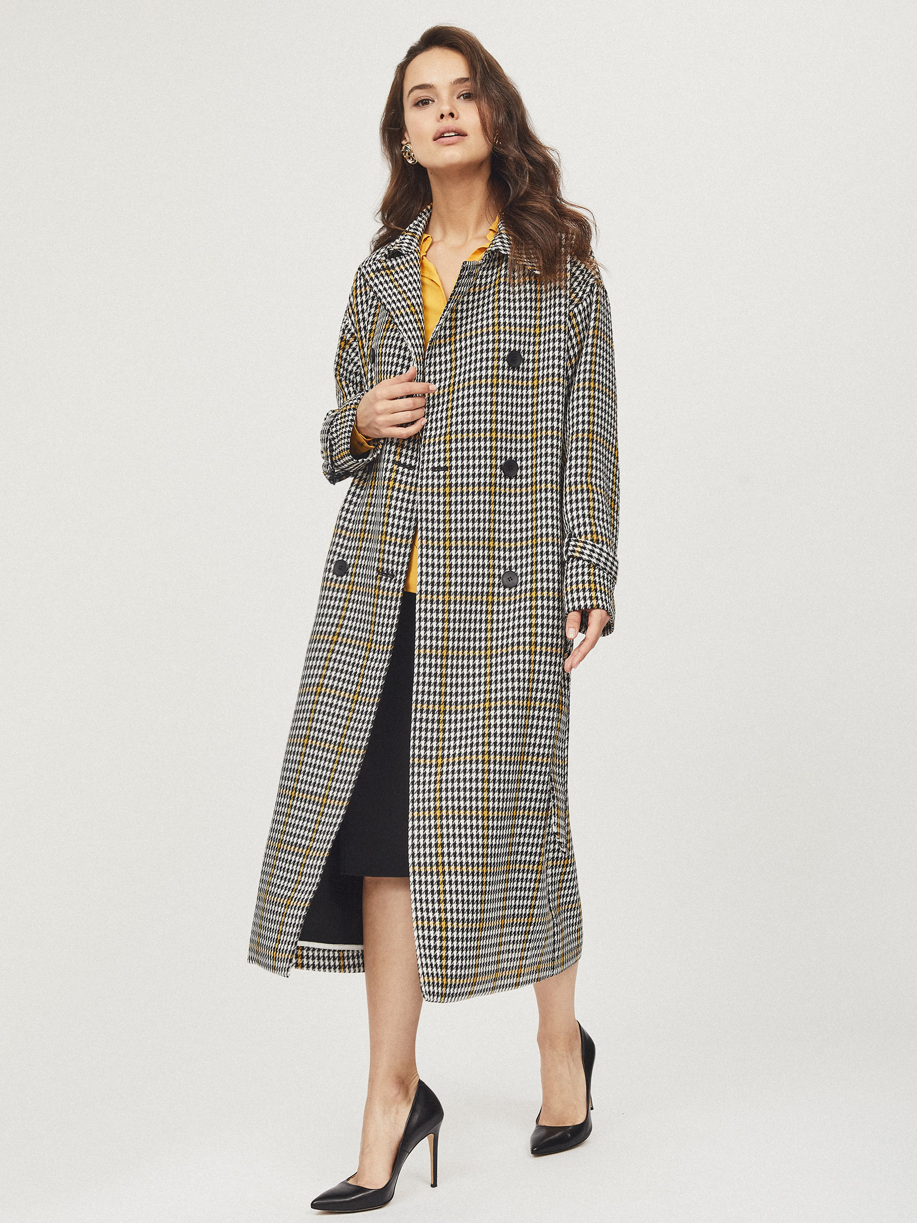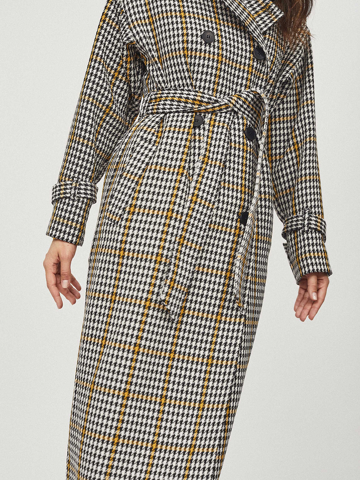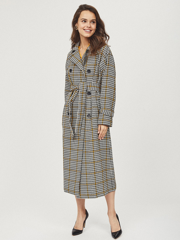 Двубортное пальто с поясом