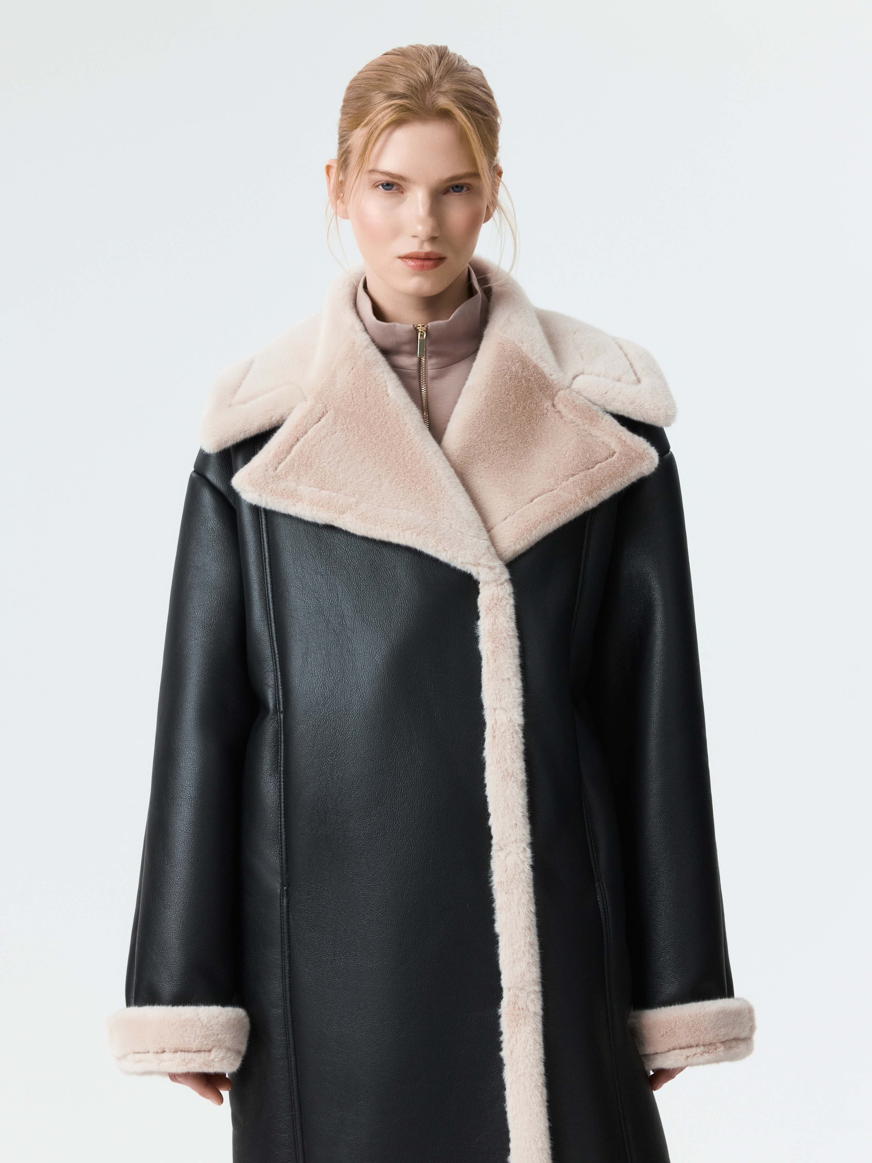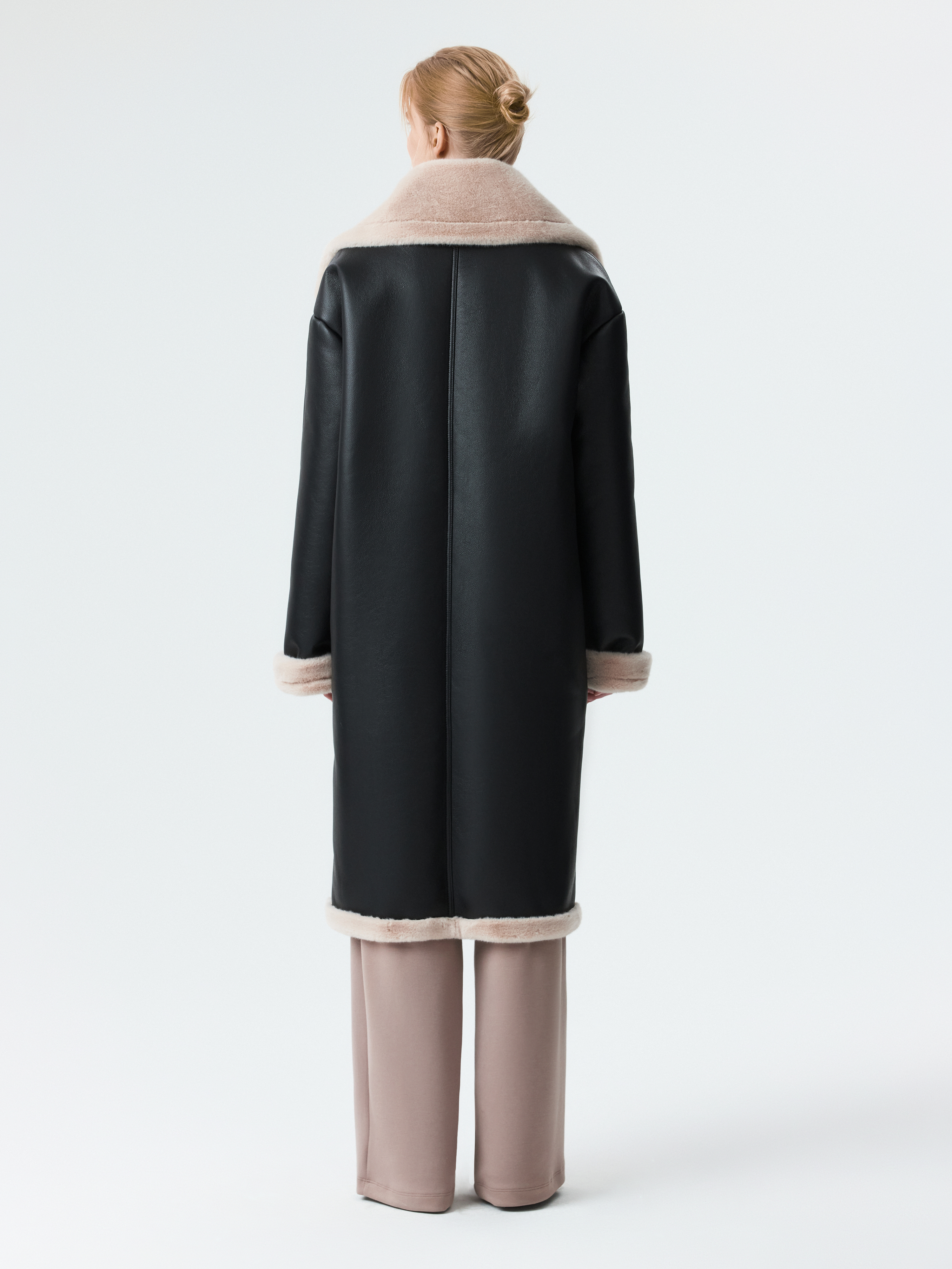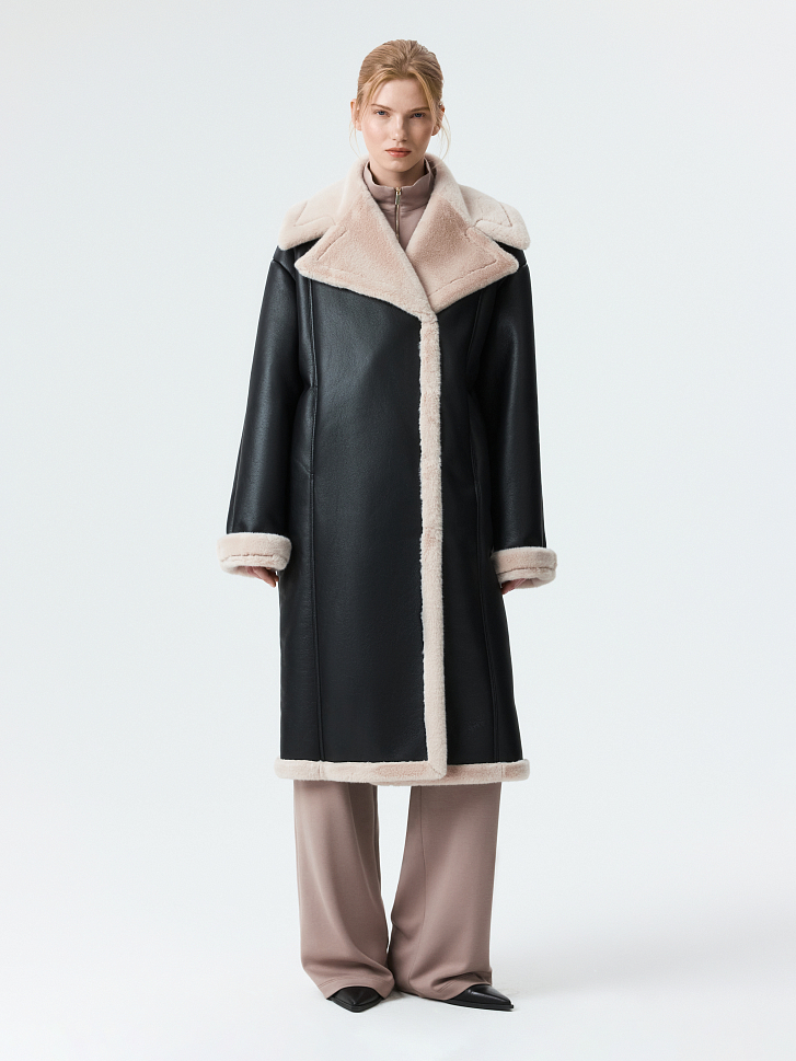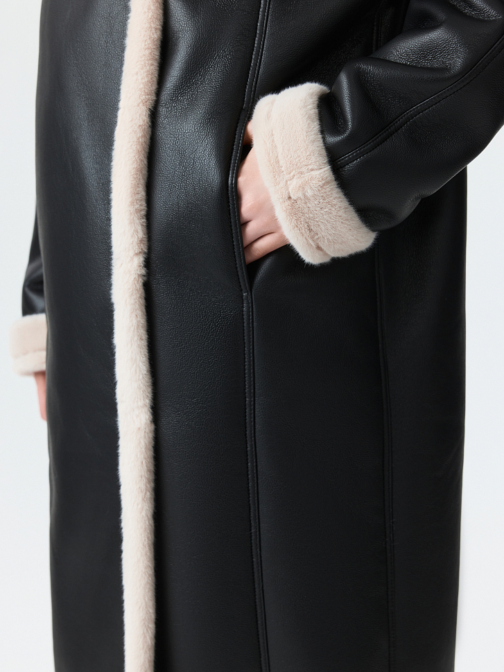 Длинная дубленка сделает зимние прогулки комфортными, а образы – стильными. Модель из искусственной кожи и изнанки из искусственного меха хорошо сохраняет тепло даже в морозы. Свободный силуэт в сочетании с застежкой на кнопки создает функциональный элемент гардероба.