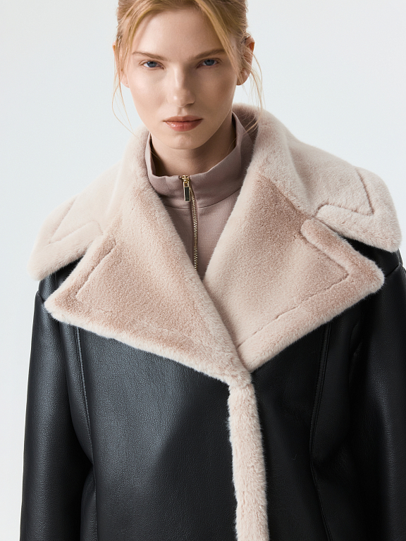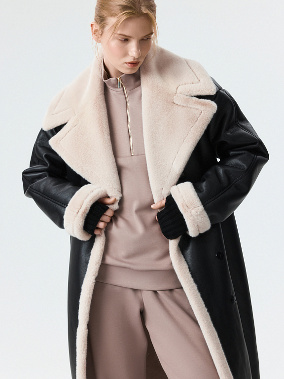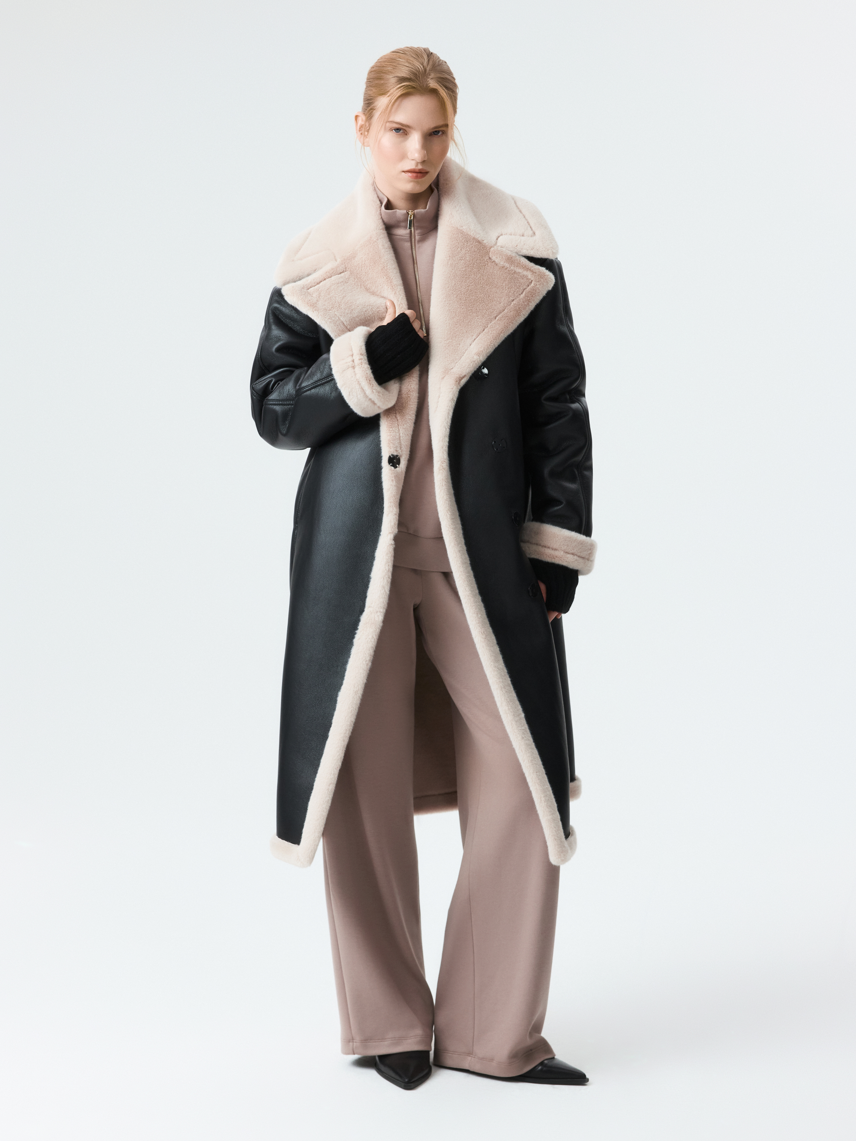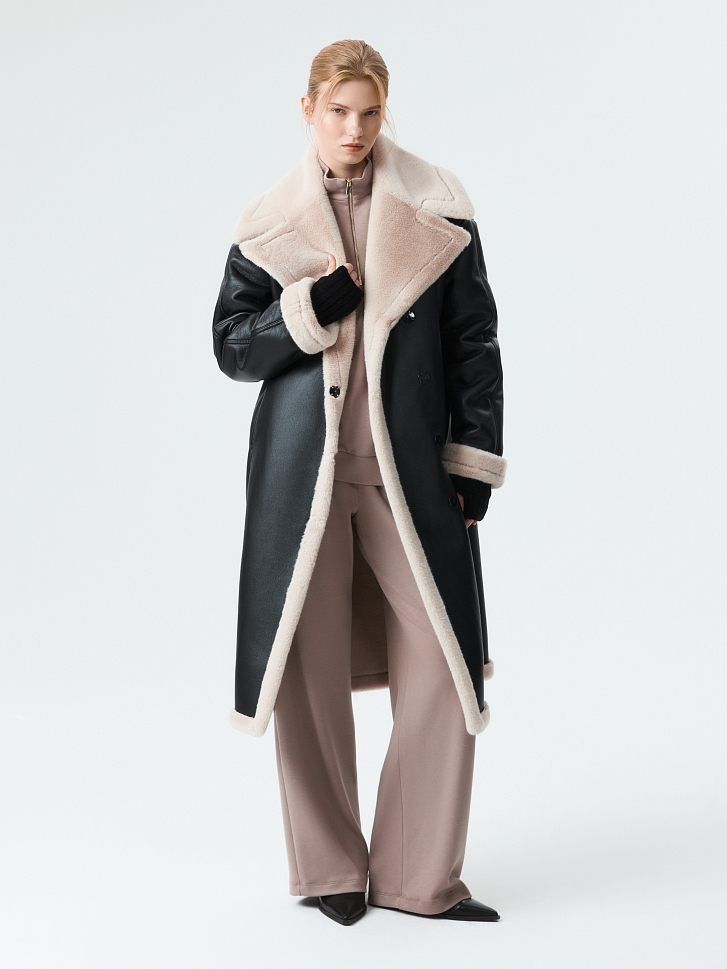 Длинная дубленка сделает зимние прогулки комфортными, а образы – стильными. Модель из искусственной кожи и изнанки из искусственного меха хорошо сохраняет тепло даже в морозы. Свободный силуэт в сочетании с застежкой на кнопки создает функциональный элемент гардероба.