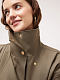 Плащ оверсайз – современный подход к классической модели: двойной клапан придает эффект многослойности, крупные боковые карманы на молнии добавляют актуальный акцент. Плотный хлопковый текстиль с водоотталкивающей пропиткой защитит от легких осадков, а воротник-стойка от ветра. Модель свободного кроя можно дополнительно приталить поясом.