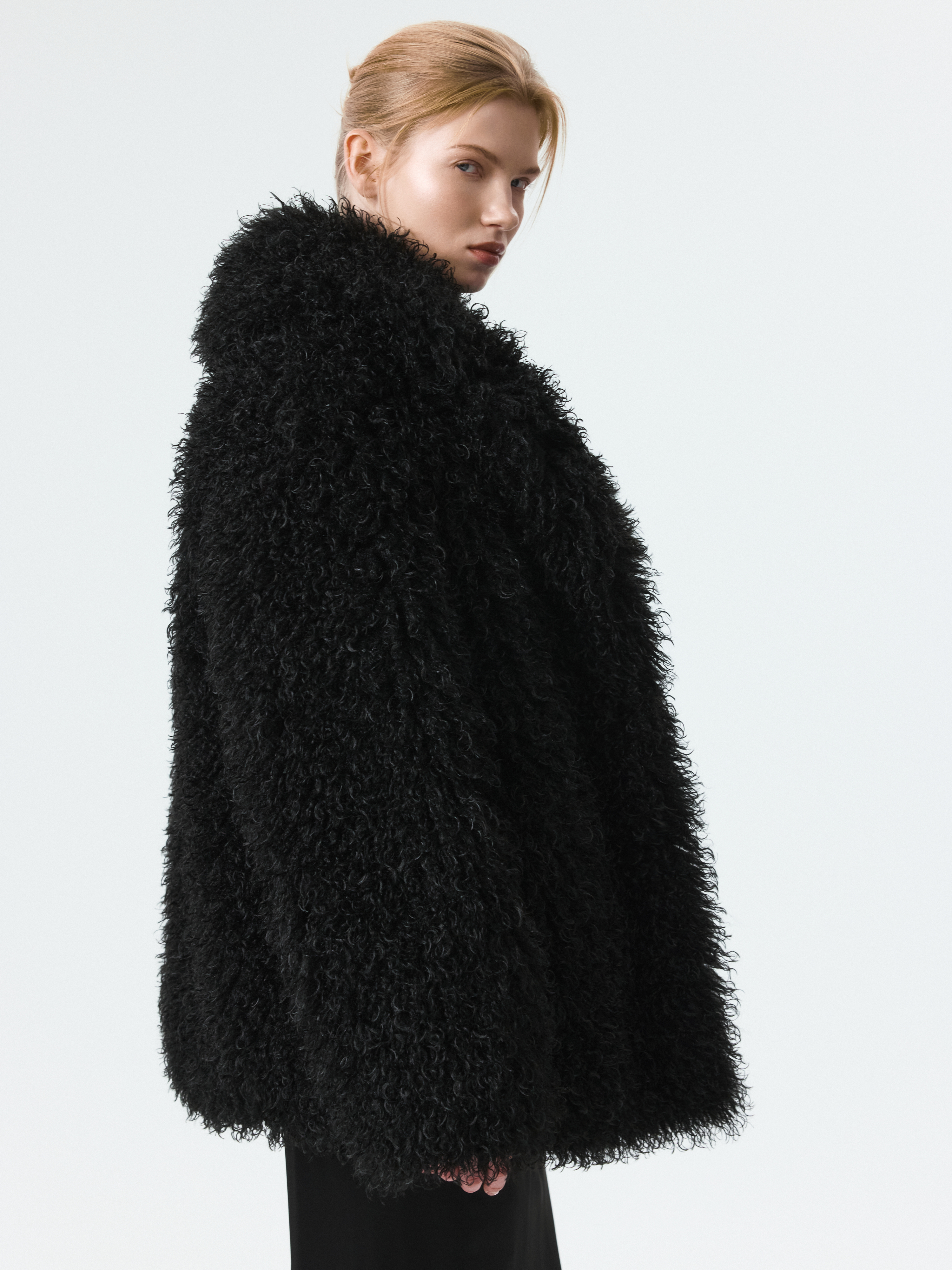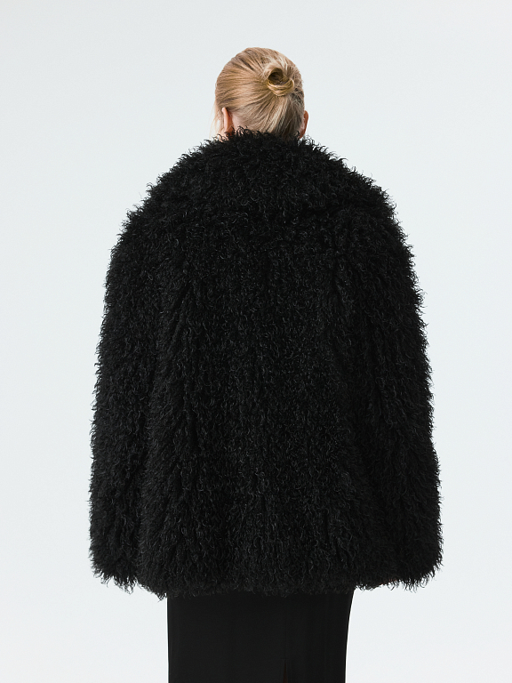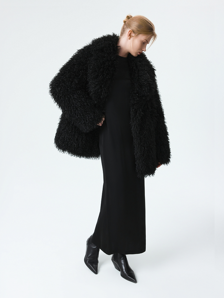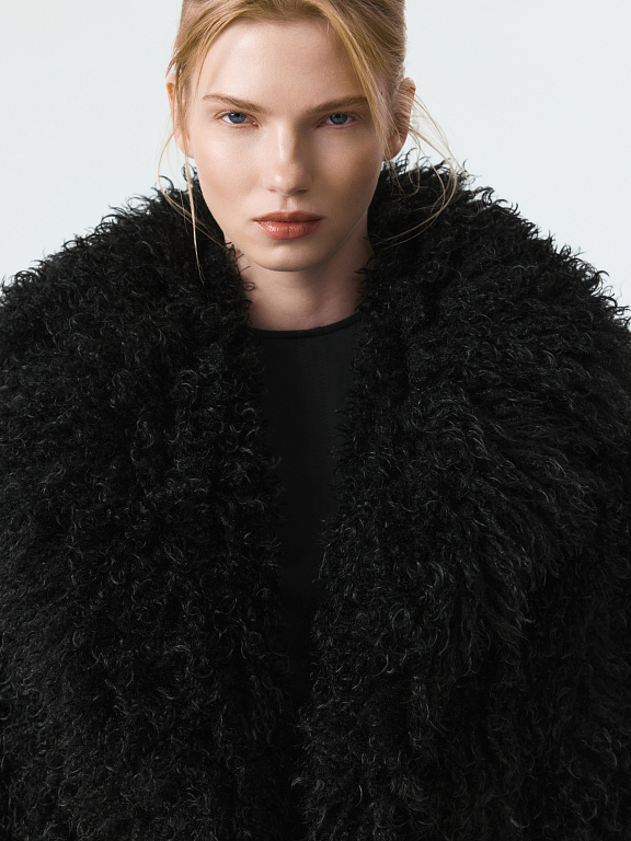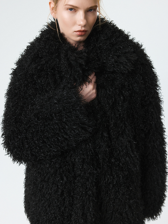 Пушистая шуба станет эффектным акцентом в зимнем гардеробе. Длинный ворс с имитацией меха ламы тактильно приятный на ощупь. Модель утеплена синтепоном, что создает дополнительную защиту от холода. Застежка на крючки и боковые карманы добавляют практичности.