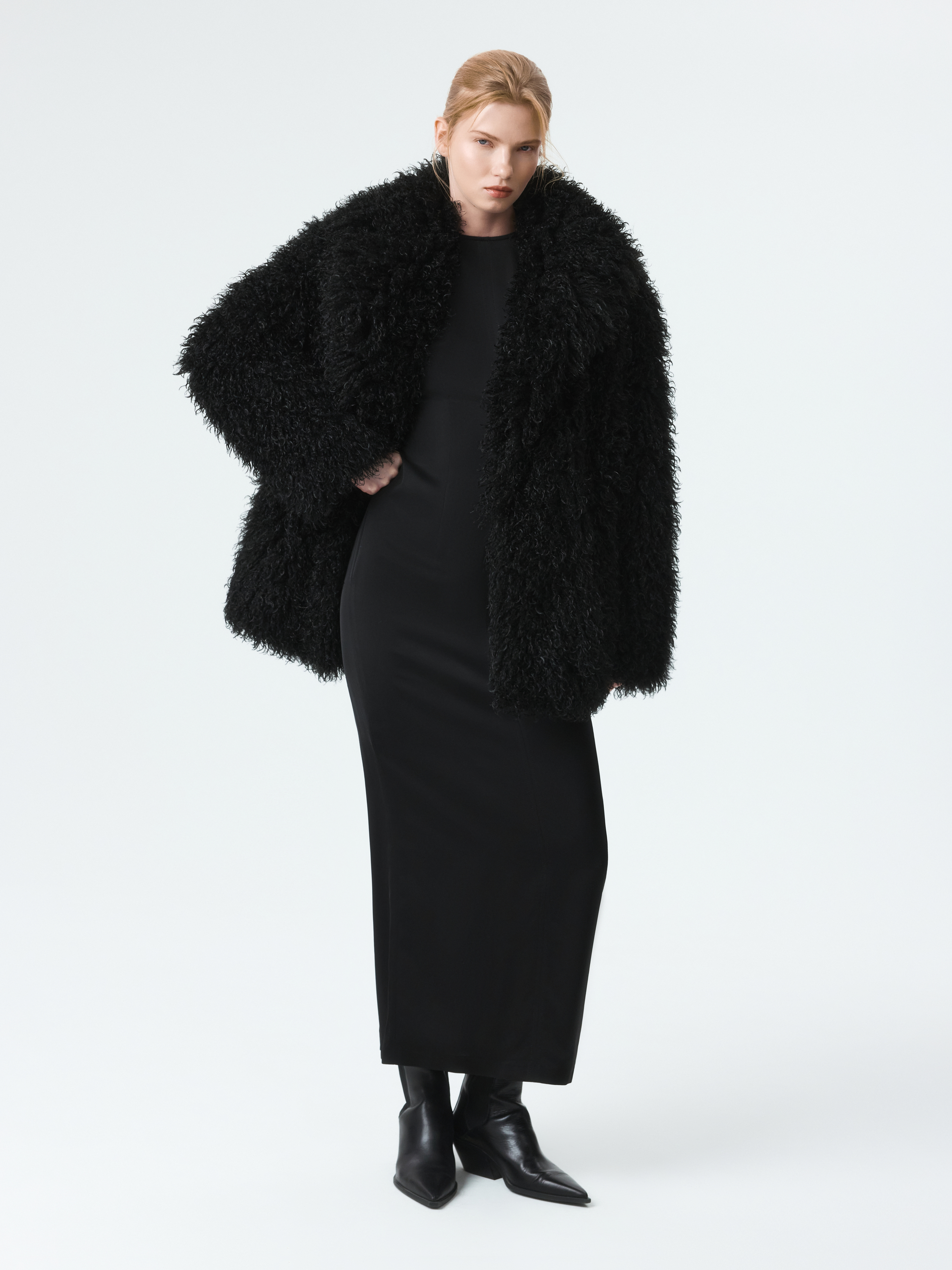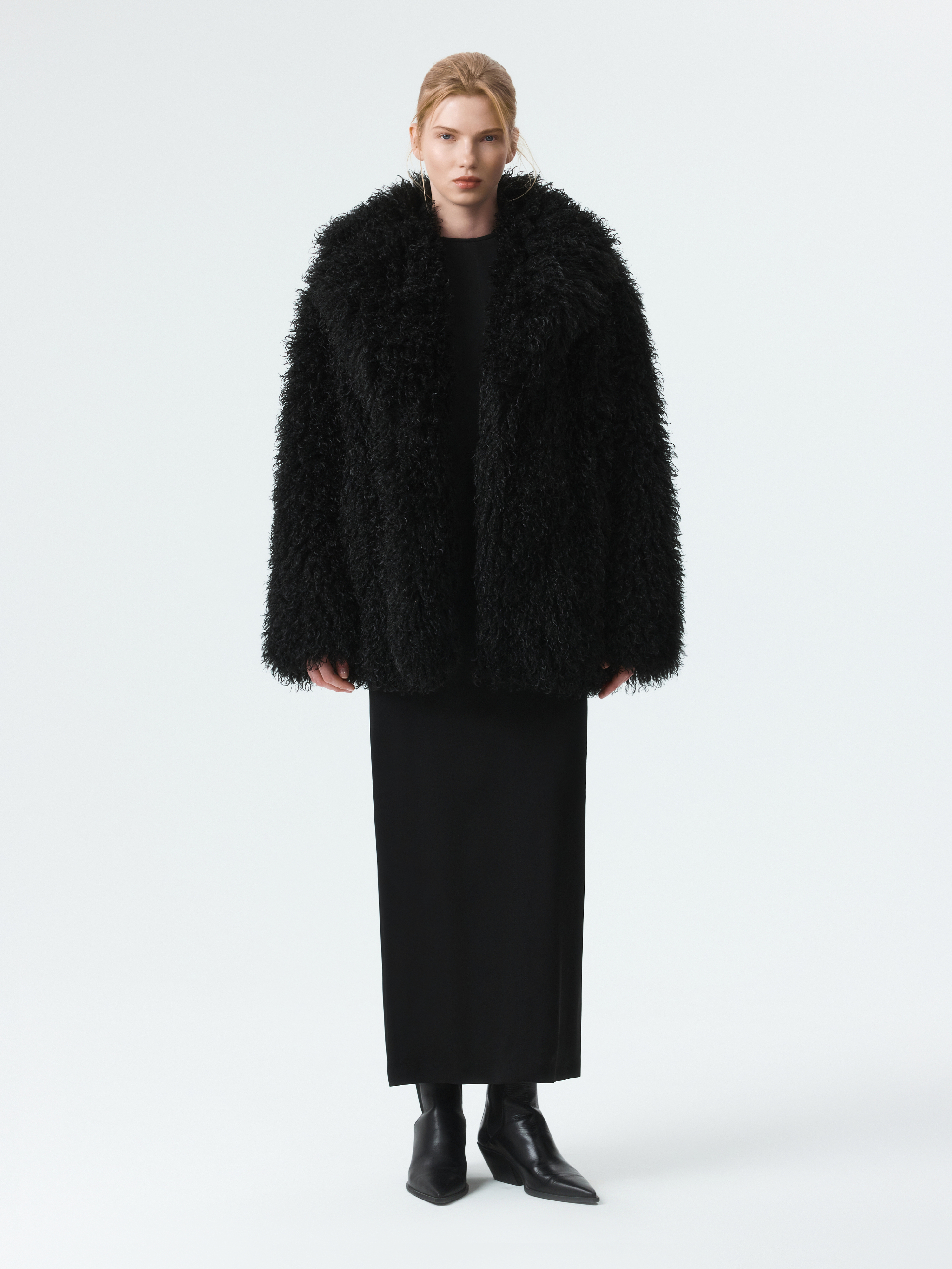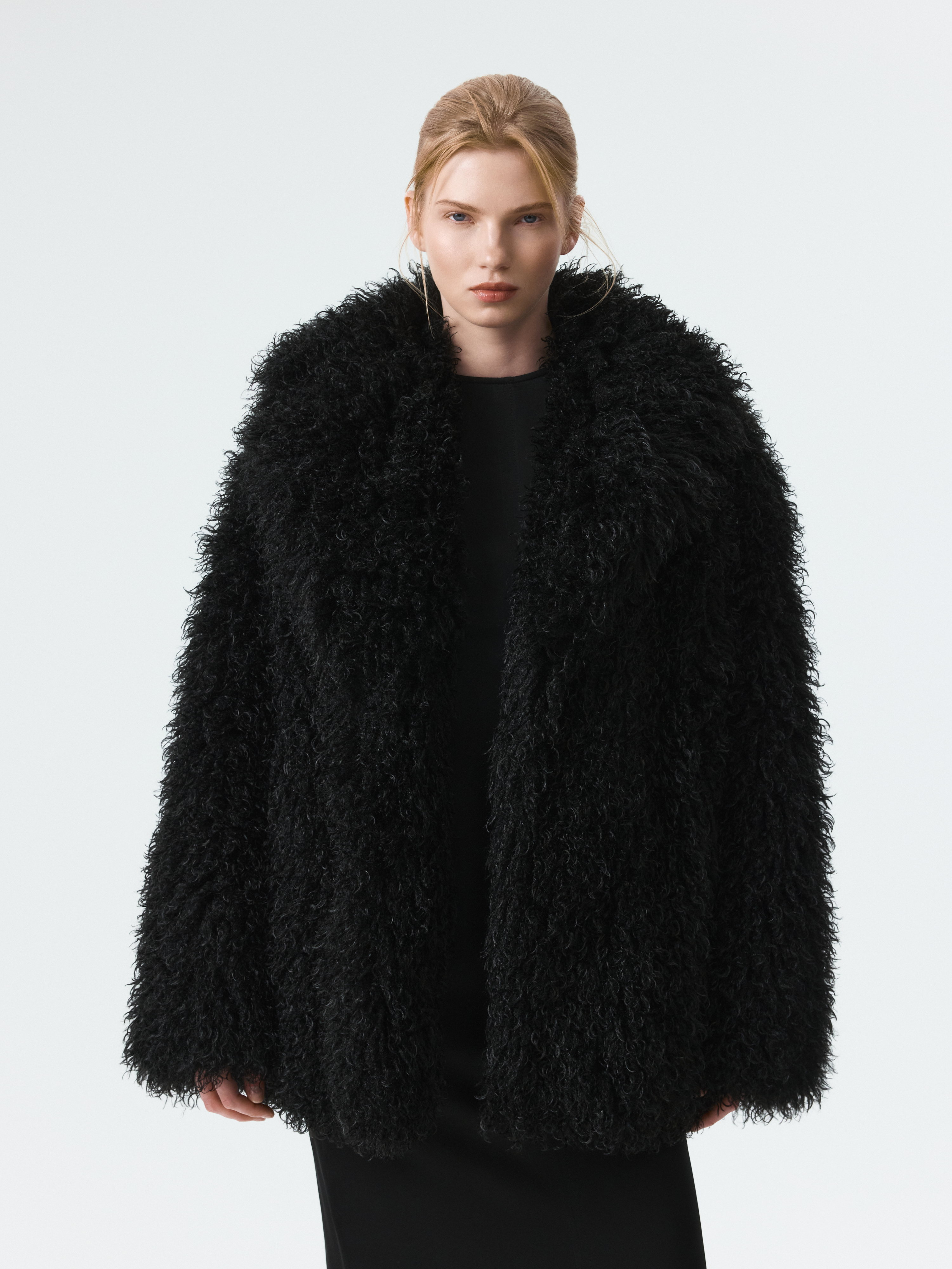 Пушистая шуба станет эффектным акцентом в зимнем гардеробе. Длинный ворс с имитацией меха ламы тактильно приятный на ощупь. Модель утеплена синтепоном, что создает дополнительную защиту от холода. Застежка на крючки и боковые карманы добавляют практичности.