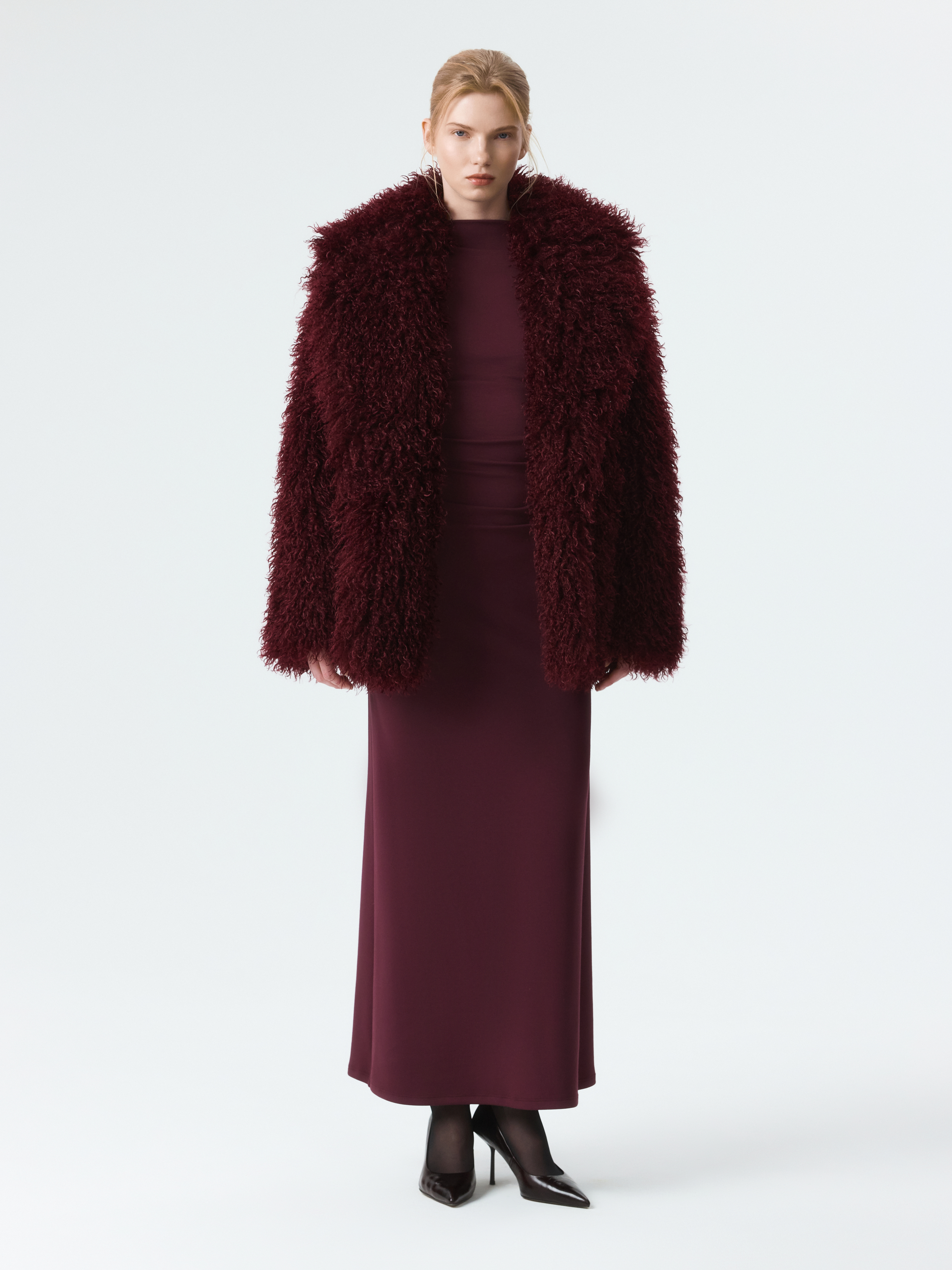 Пушистая шуба станет эффектным акцентом в зимнем гардеробе. Длинный ворс с имитацией меха ламы тактильно приятный на ощупь. Модель утеплена синтепоном, что создает дополнительную защиту от холода. Застежка на крючки и боковые карманы добавляют практичности.
