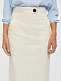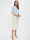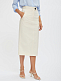Приталенная юбка длины миди. Высокая посадка, боковые прорезные карманы по бокам, накладные –сзади. Застегивается на молнию и крупную пуговицу.