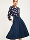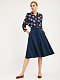 Расклешённая юбка длины миди с боковыми подрезными карманами. Юбка с притачным поясом с боковыми широкими шлёвками для ремня в комплекте. Застёжка на потайную молнию сзади. Изделие без подкладки. Рост модели 175 см, размер 42 (российский)