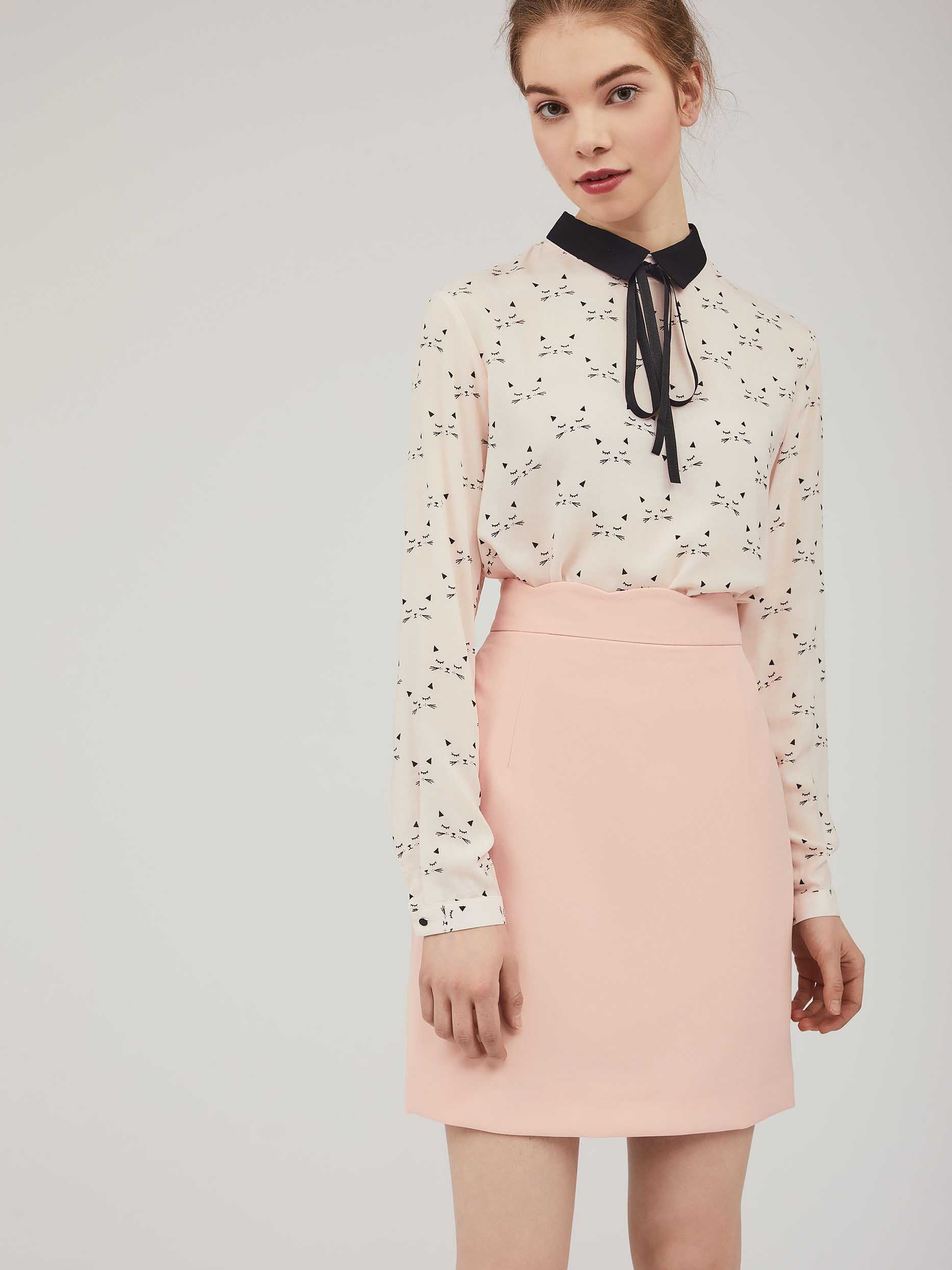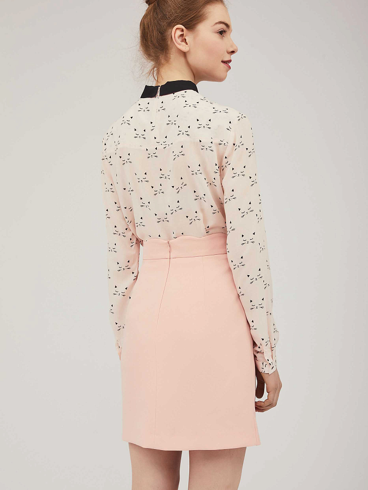 Мини-юбка силуэта "трапеция" с фигурным поясом. Застёжка на потайную молнию сзади. Изделие на подкладке.  Рост модели 176 см, размер 42 (российский)
