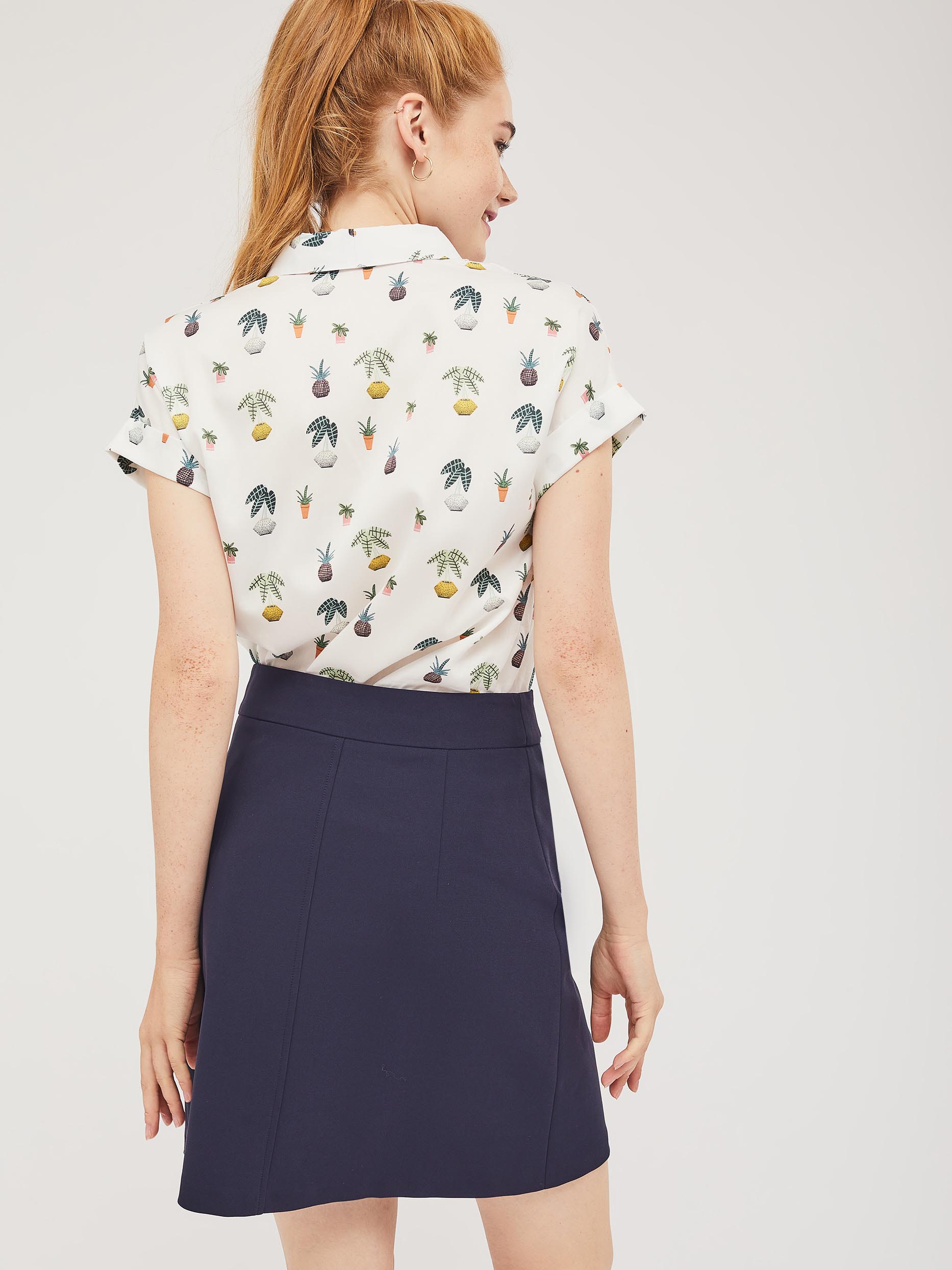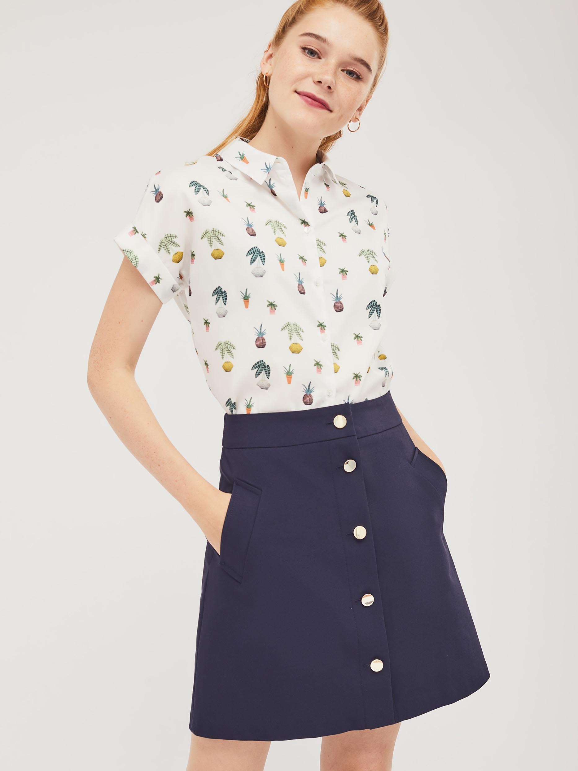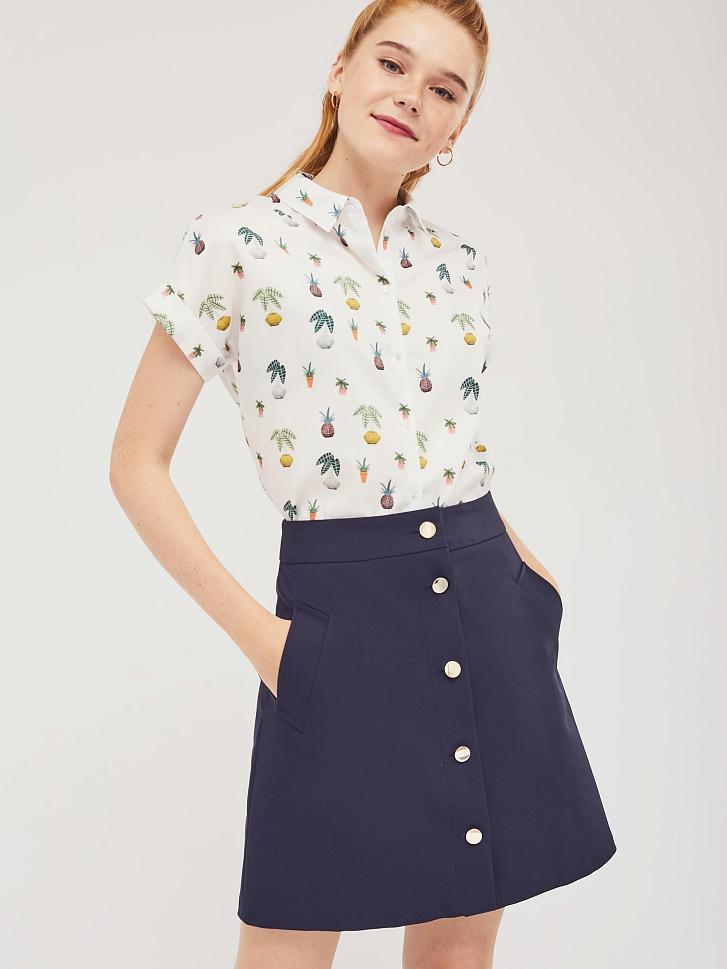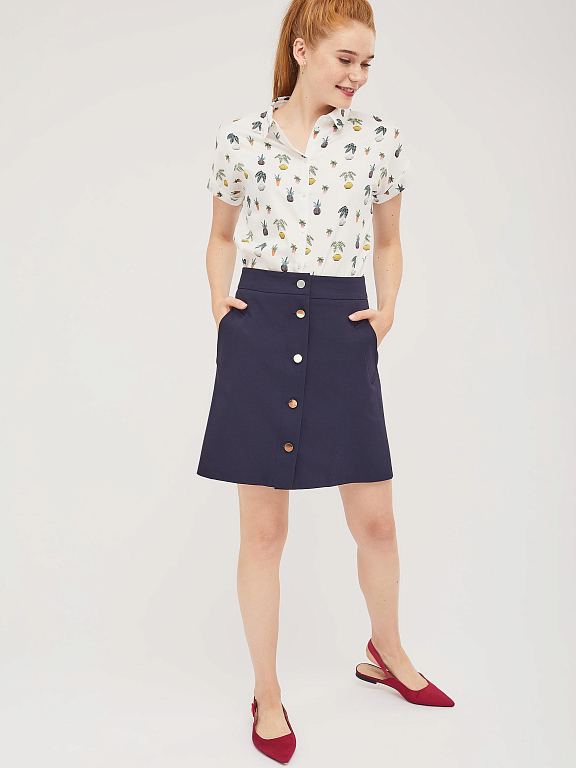 Юбка формы "трапеция" с застёжкой на пуговицы. Изделие с боковыми карманами с листочкой. Изделие без подкладки.  Рост модели 172 см, размер 42 (российский)