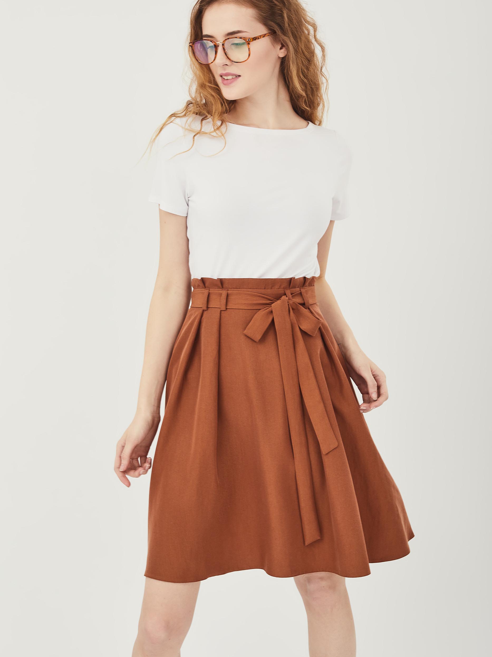 Юбка со складками на талии и поясом