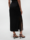 Юбка создана на контрастах асимметрии и длины. Модель прямого кроя по нижнему краю подкладки украшена бахромой – она эффектно движется при каждом шаге. Текстиль средней плотности содержит натуральный лен, который придает материалу характерную фактурность.