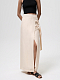 Юбка на запах – стильное решение, направленное на многофункциональность. Для пошива модели-макси выбрали легкий дышащий текстиль с натуральными волокнами конопли, поэтому в такой юбке будет комфортно на протяжении всего дня. Дополнительное удобство создает разрез, который дарит свободу движений.