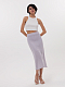 Универсальная юбка-миди сочетается с любым верхом: прилегающим или объемным. Плотная пряжа из 100% хлопка комфортна в носке и менее вытягивается, а мягкая трикотажная подкладка предотвращает просвечивание. Изделие связали в технике кроше и украсили едва заметными пайетками, которые придают деликатное мерцание.