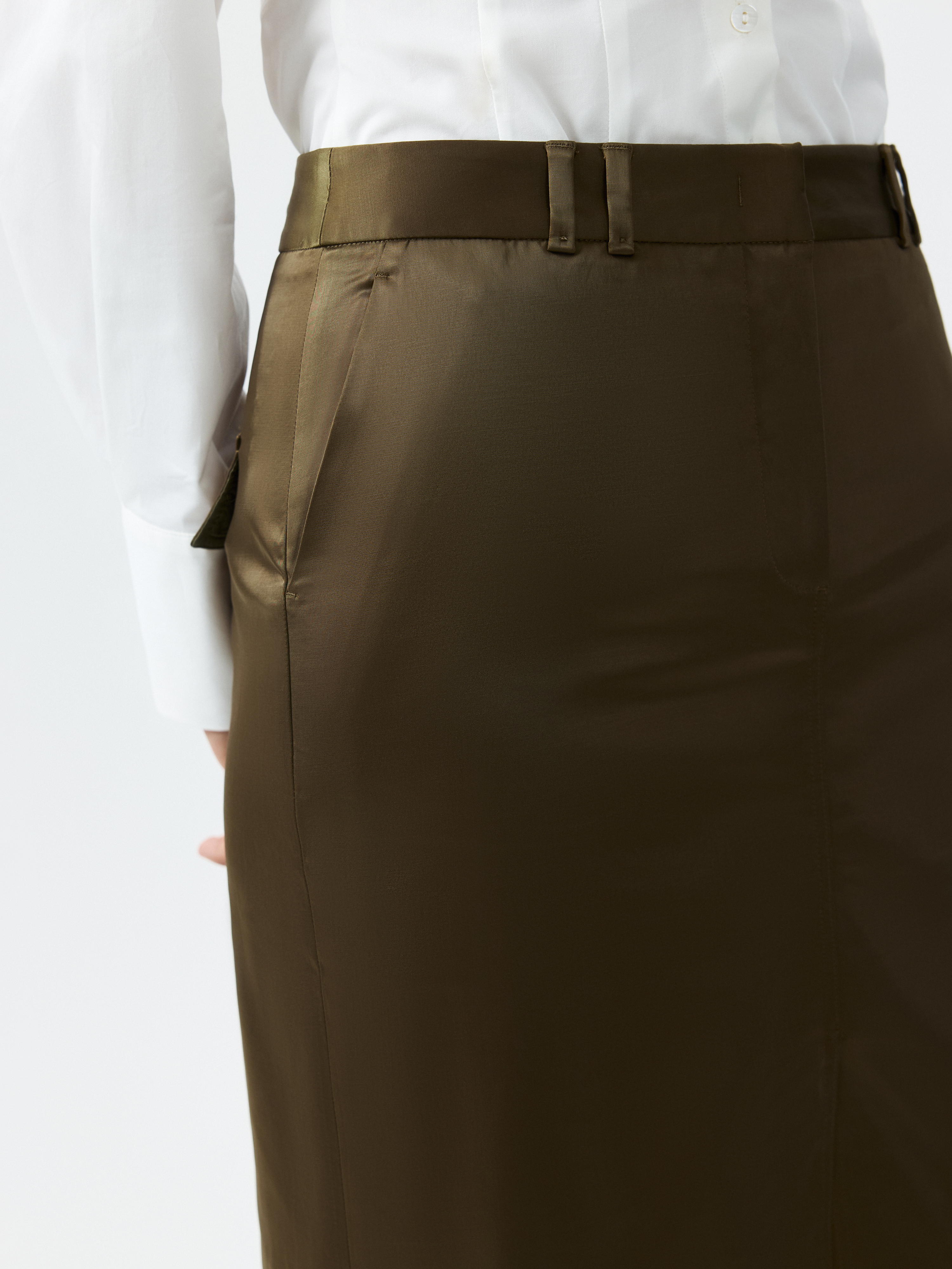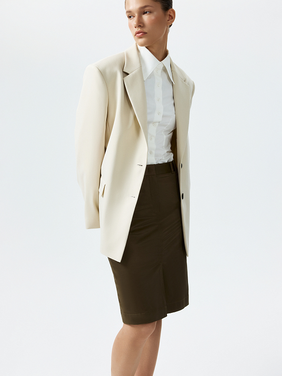 Прямая юбка с разрезом последует вашему настроению благодаря универсальному фасону. Плотный шелковистый текстиль слегка тянется, не сковывая движения, и комфортно прилегает к телу даже без подкладки. Стилизуйте с парным жилетом или базовым трикотажем.