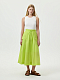 Расклешенная юбка ниже колена дарит свободу движений и выгодно садится на любой тип фигуры. Тонкая полупрозрачная ткань из натурального хлопка обладает дышащими свойствами и обеспечивает комфорт. Кулиска на талии создает удобную посадку и придает женственной юбке спортивный стиль.