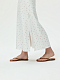 Длинная атласная юбка, украшенная мелким цветочным принтом – воплощение женственности и романтичности. Струящийся шелковистый текстиль не просвечивает благодаря комфортной подкладке из вискозы. Стилизуйте модель с парным топом или базовым трикотажем.