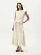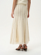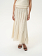 Вязаная юбка с бахромой в стиле бохо будет актуальна и в теплое время года. Плотная пряжа из хлопка с фактурными узелками мягко прилегает и хорошо пропускает воздух, а вертикальные полоски визуально стройнят. Дополнить костюм можно комплектным топом.