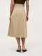 Расклешенная юбка подчеркнет женственность и легкость образа. Хлопковый текстиль средней плотности хорошо держит форму складок, дышащая подкладка из 100% хлопка обеспечивает комфортное прилегание. Широкий притачной пояс акцентирует талию, а хлястики позволяют регулировать обхват.