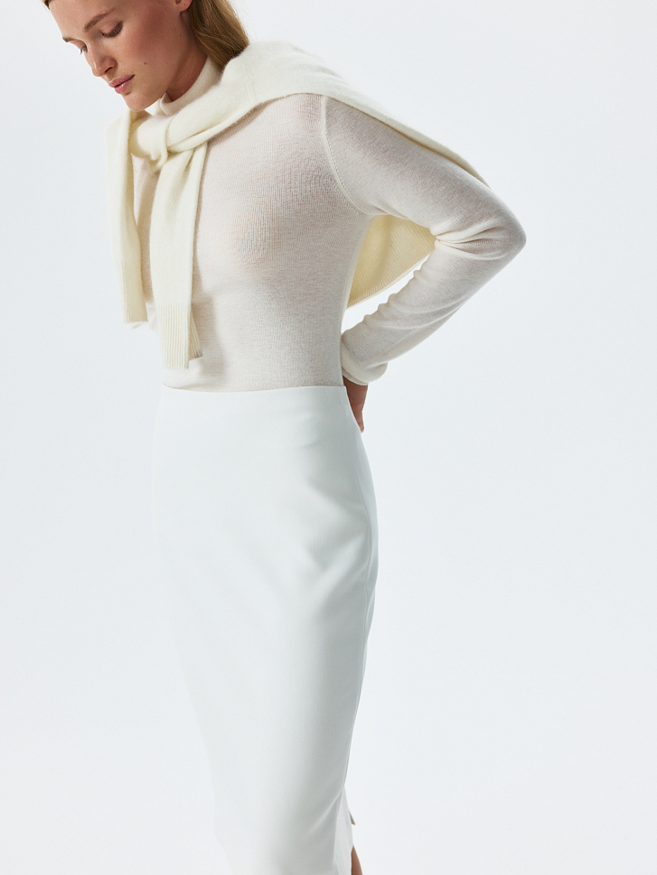 Юбка-карандаш легко подстраивается под любой повод: от офисных будней до светских выходов. Плотный костюмный текстиль из поливискозы не тянется и обладает износоустойчивостью. Благодаря зауженному крою модель выгодно подчеркивает фигуру, а шлица обеспечивает комфортный шаг.
