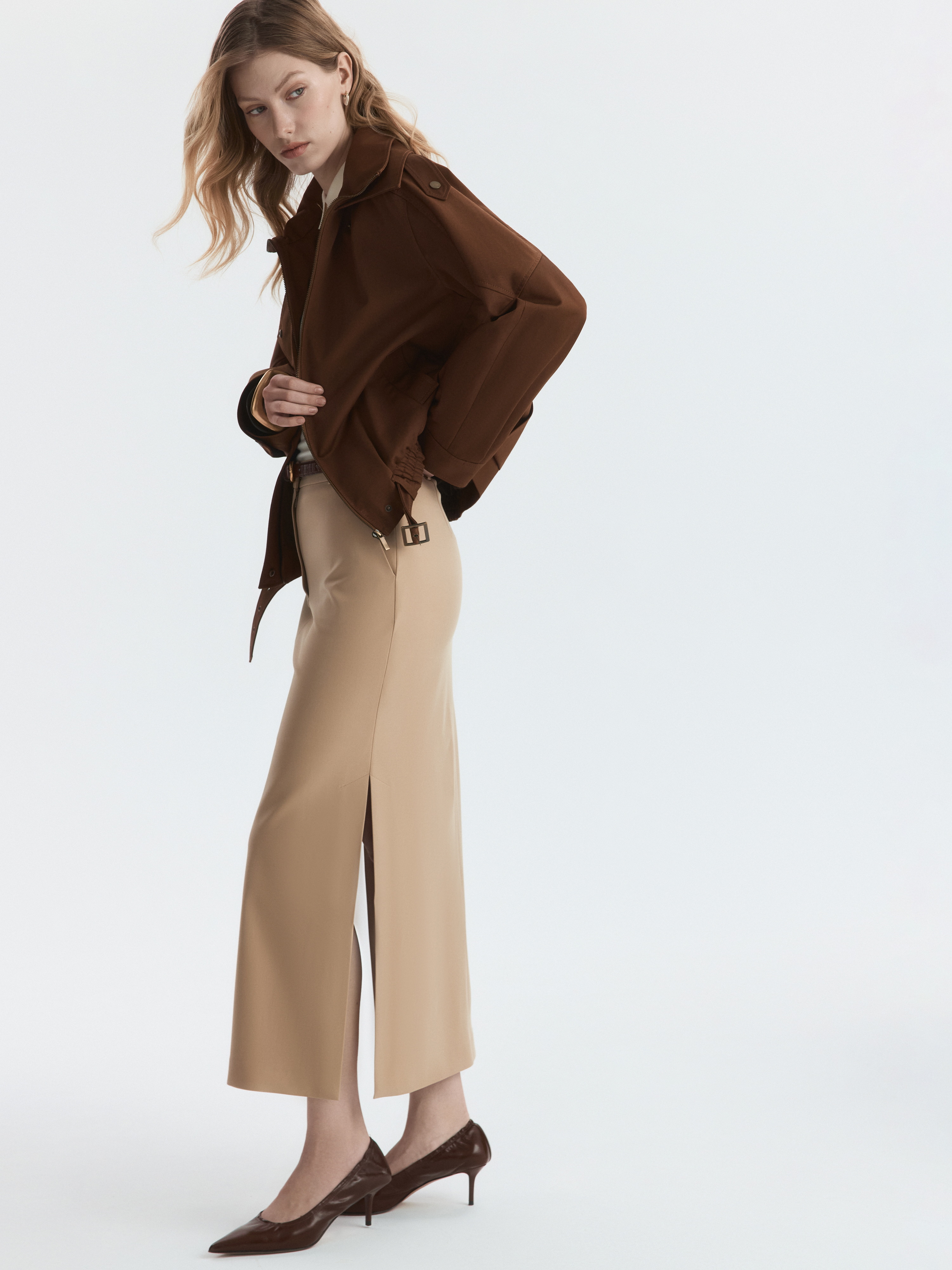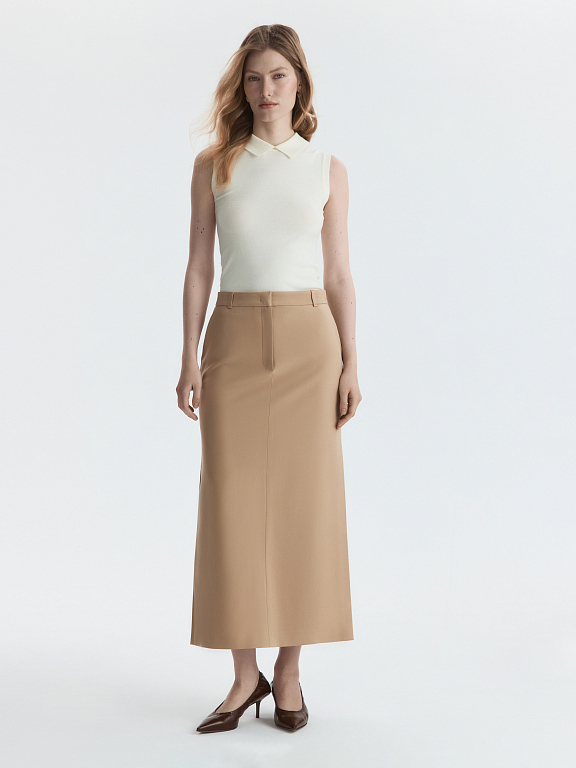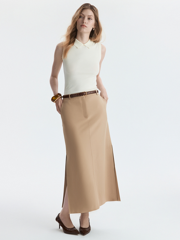 Прямая юбка в длине макси будет удачно сочетаться и с городскими, и с деловыми образами. Плотный текстиль из вискозы не тянется и облегает в бедрах, а гладкая подкладка дарит комфортную посадку. Чтобы длинная юбка не сковывала шаг, по бокам предусмотрели разрезы.