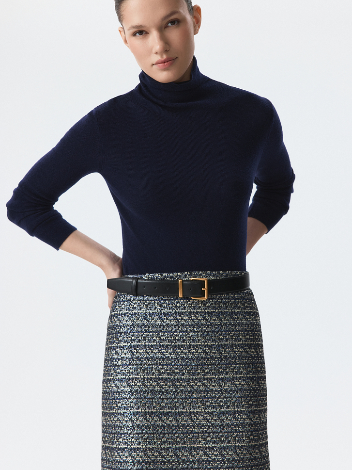 Твидовая мини-юбка – идеальный акцент как для дневных образов, так и для вечерних мероприятий. Плотный текстиль не мнется и хорошо держит форму, а нить люрекса подчеркивает текстуру и добавляет изделию нарядности.