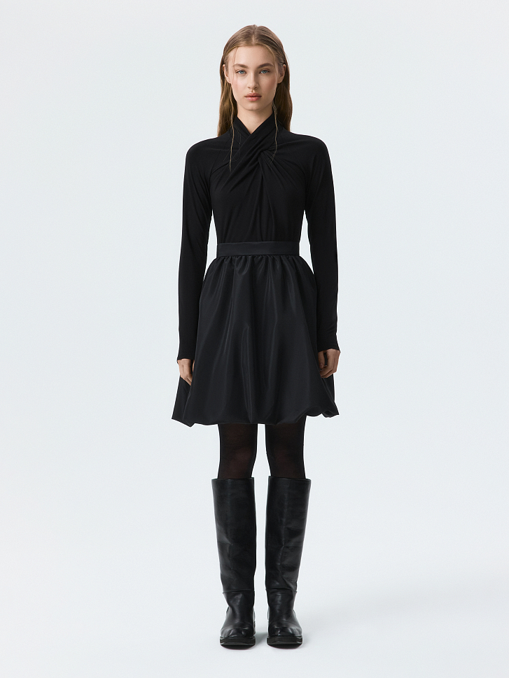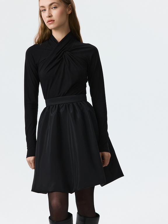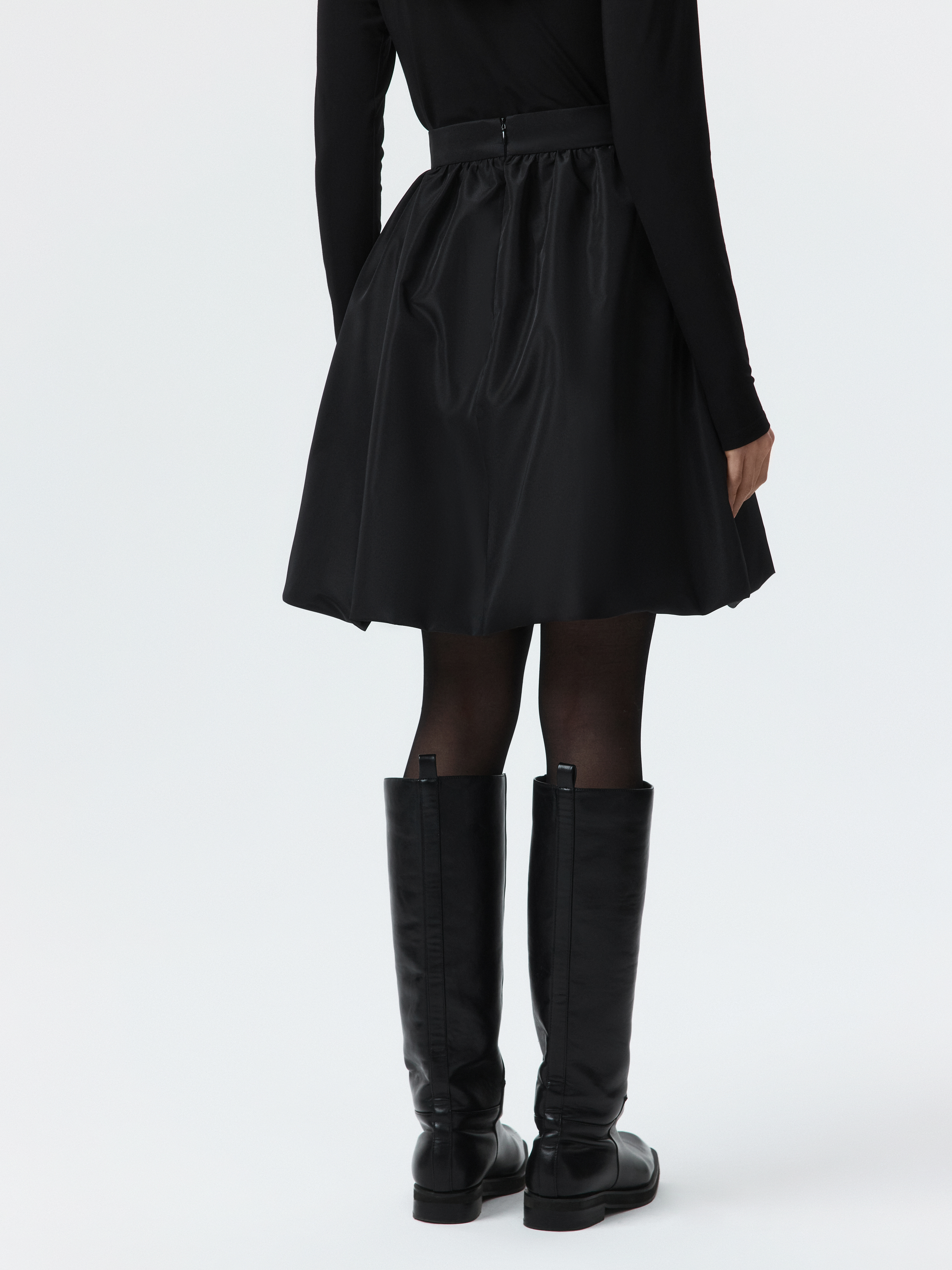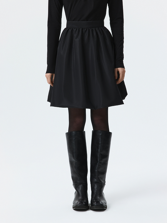 Пышная юбка-баллон повышает градус нарядности. Плотный блестящий текстиль из тафты хорошо держит объем и форму складок, а благодаря гладкой подкладке комфортно ощущается на теле. Стилизуйте короткую юбку в повседневные или вечерние образы.