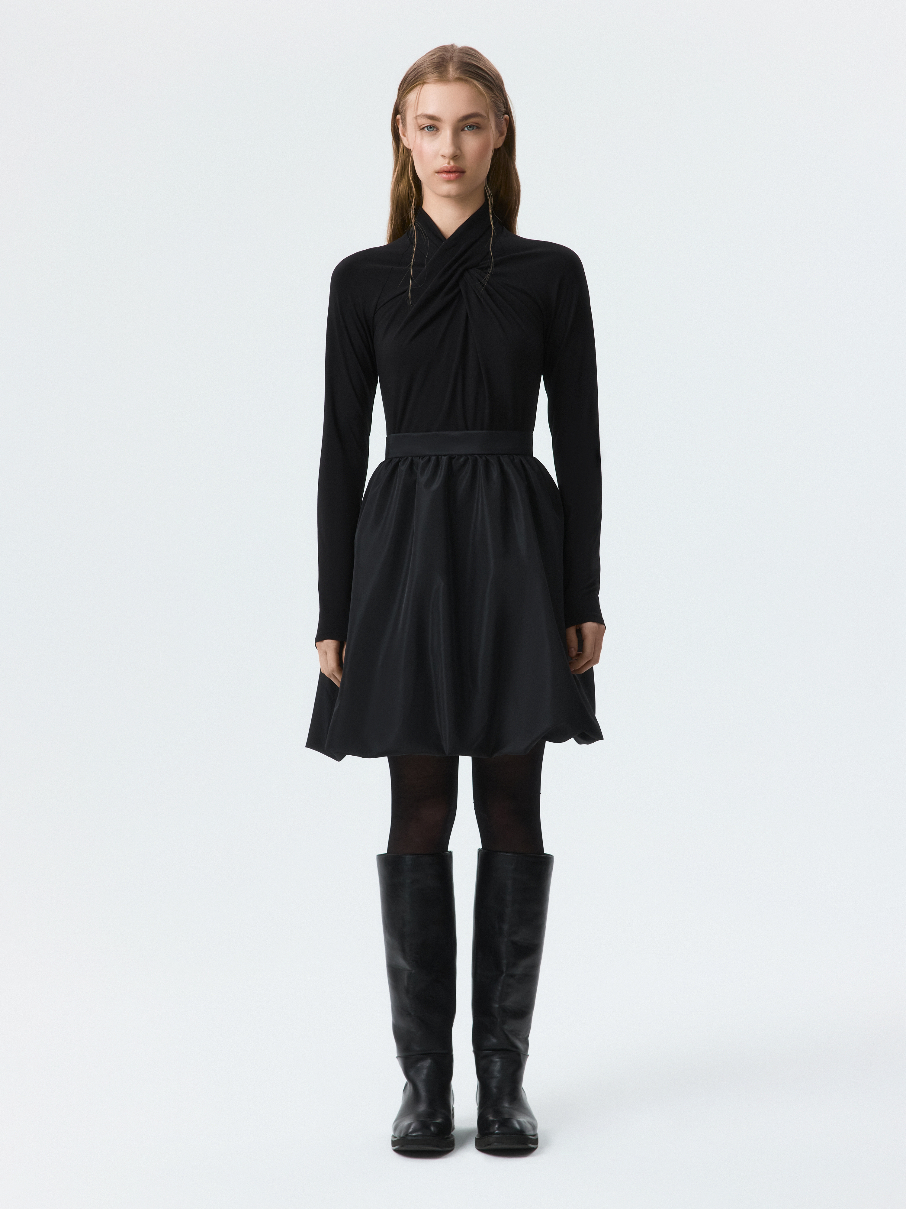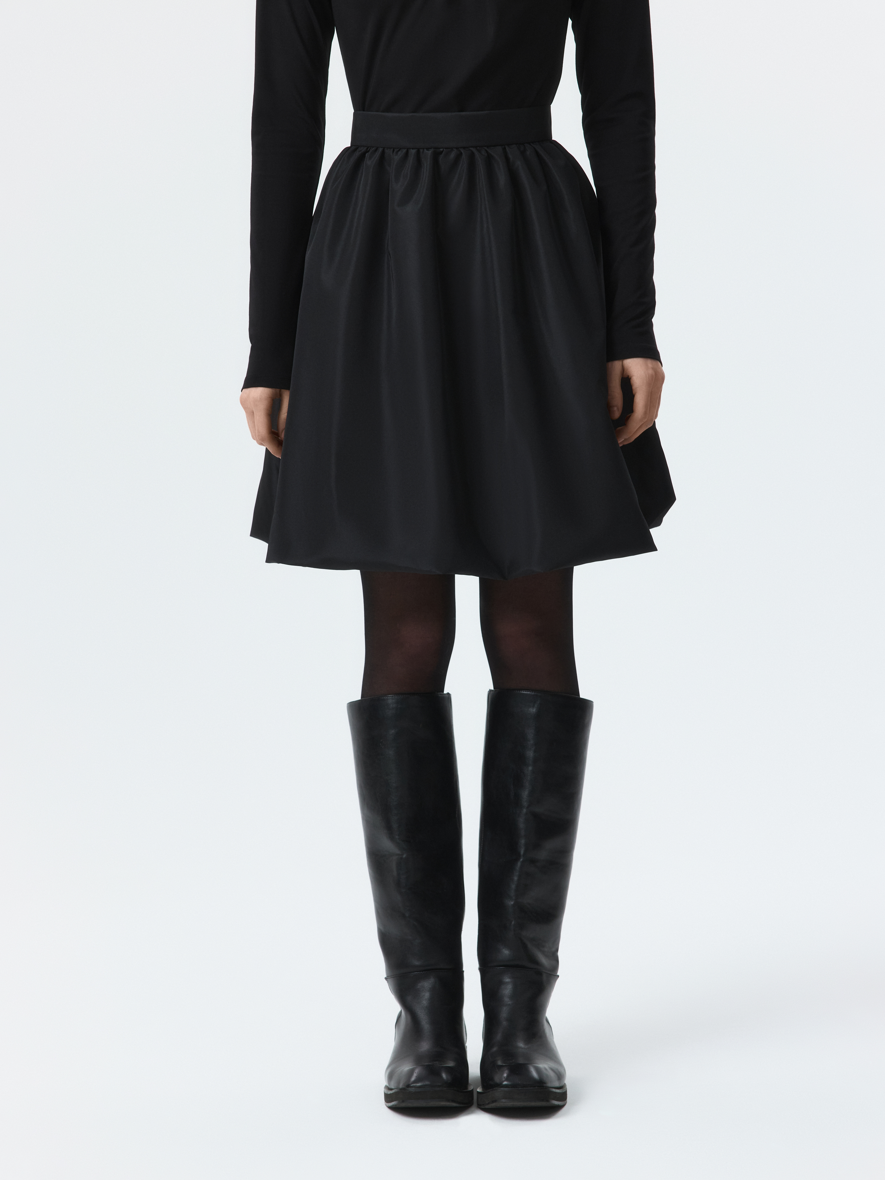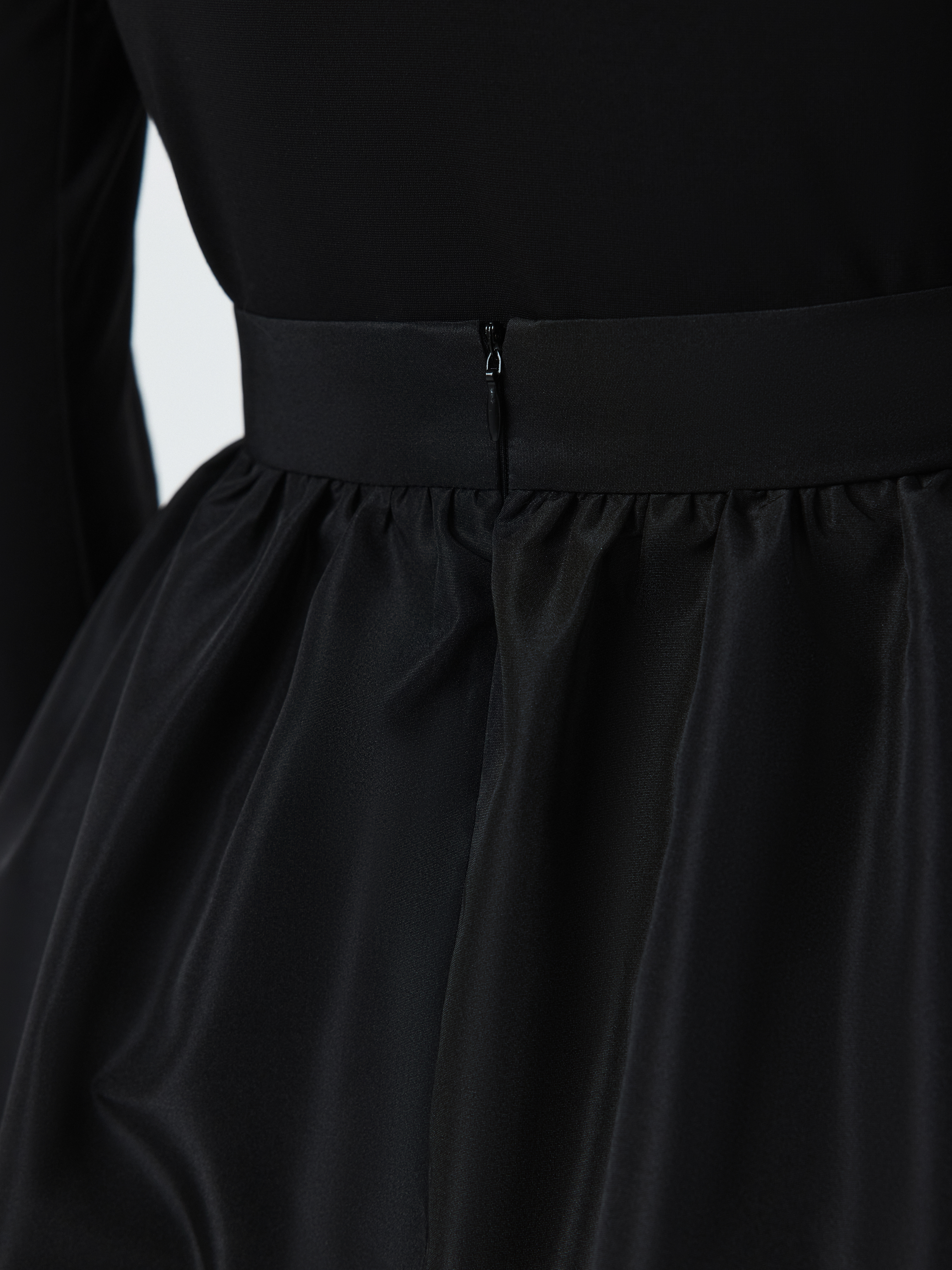 Пышная юбка-баллон повышает градус нарядности. Плотный блестящий текстиль из тафты хорошо держит объем и форму складок, а благодаря гладкой подкладке комфортно ощущается на теле. Стилизуйте короткую юбку в повседневные или вечерние образы.