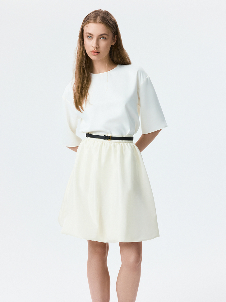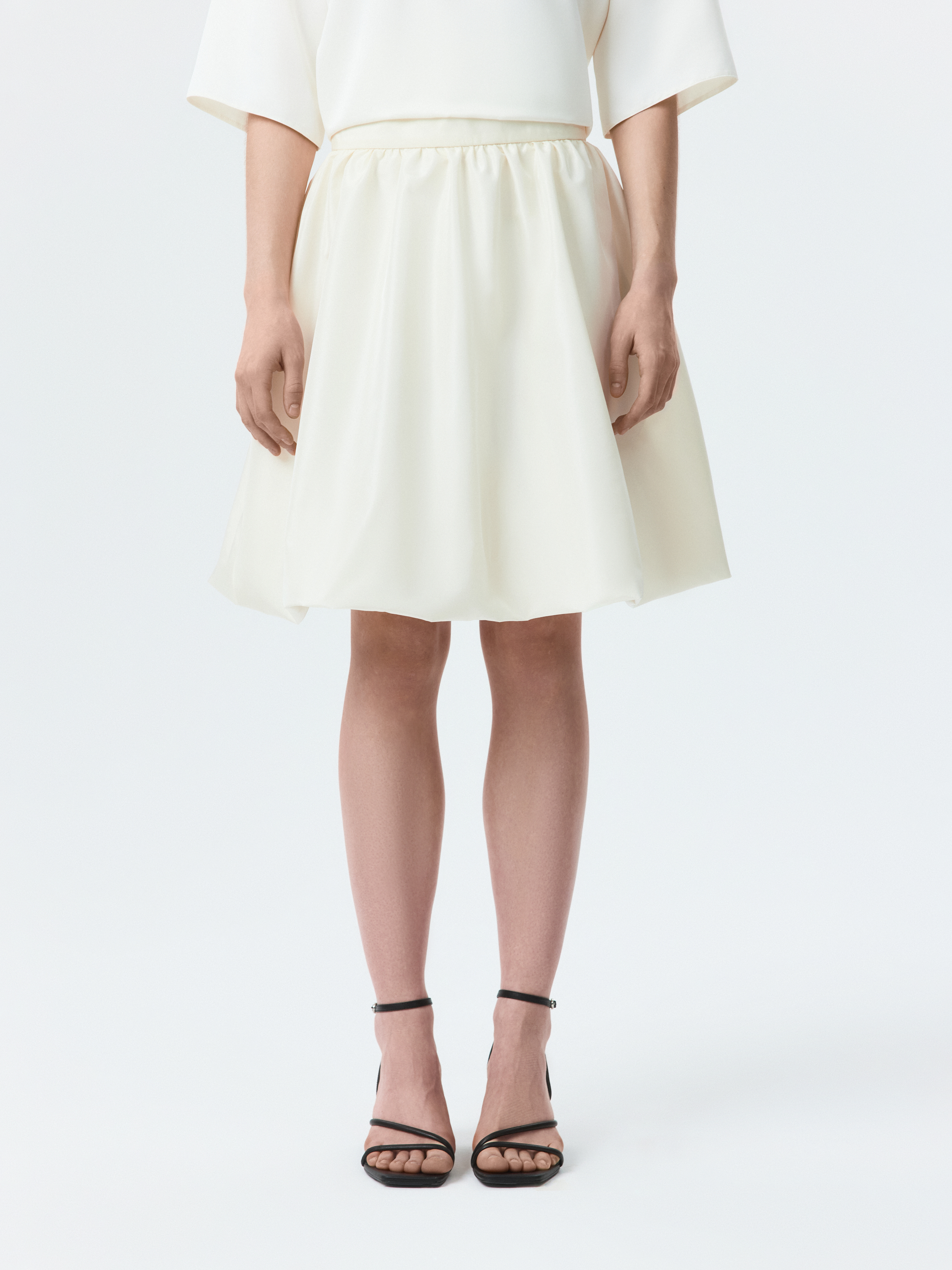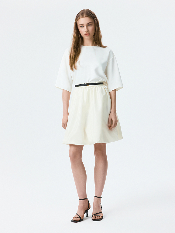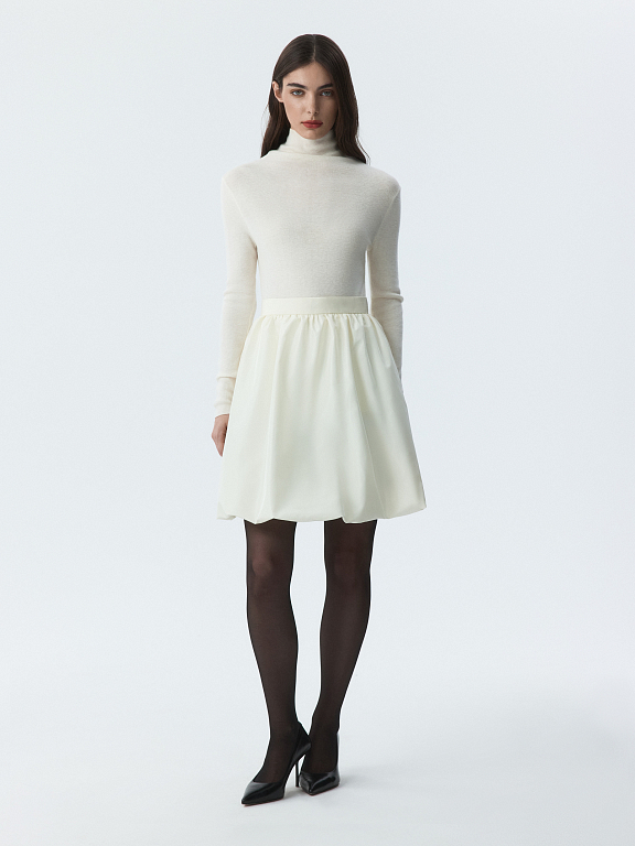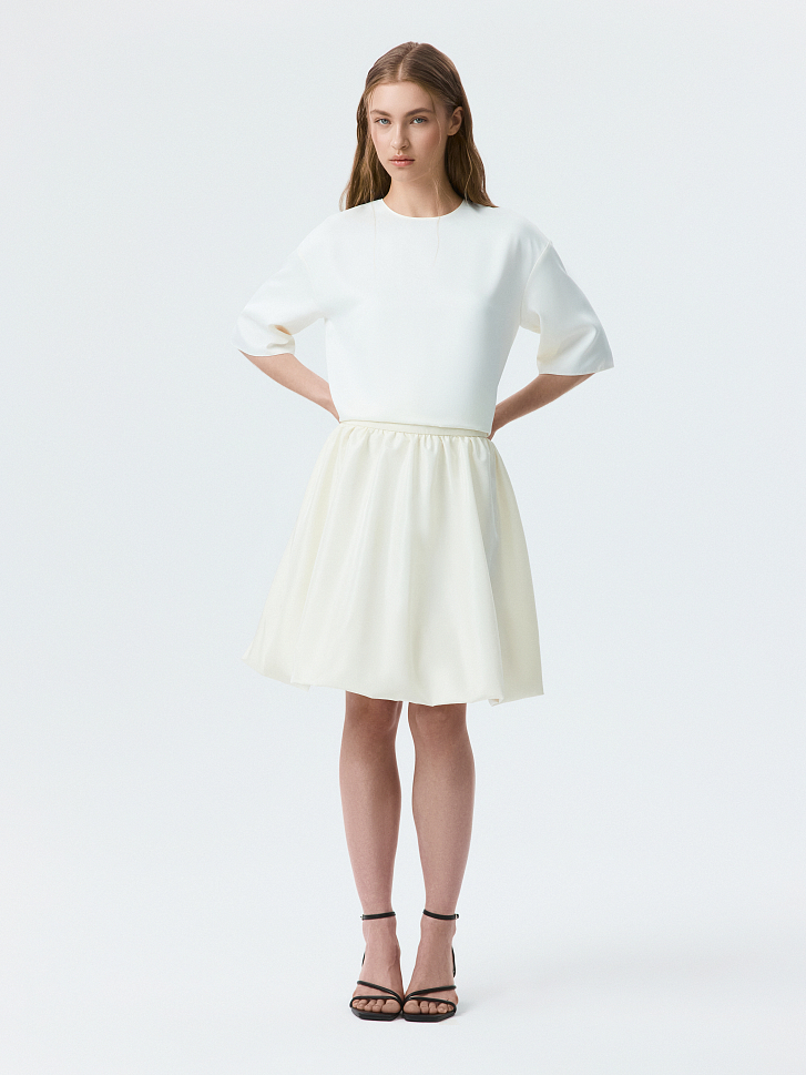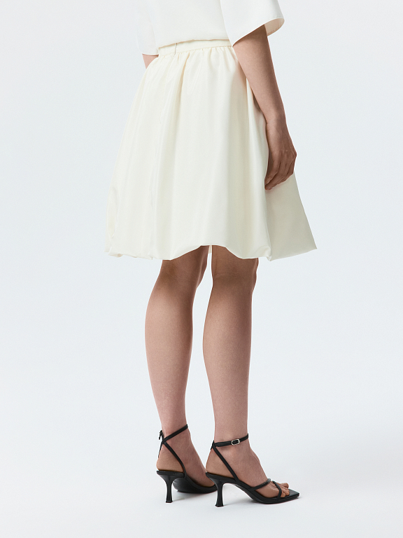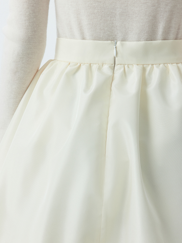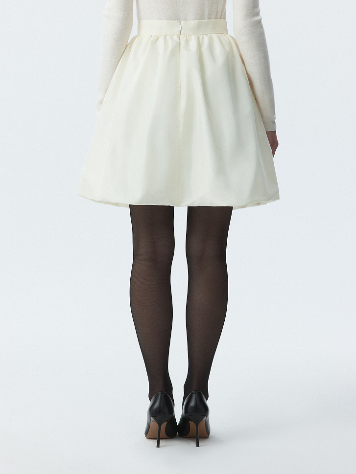 Пышная юбка-баллон повышает градус нарядности. Плотный блестящий текстиль из тафты хорошо держит объем и форму складок, а благодаря гладкой подкладке комфортно ощущается на теле. Стилизуйте короткую юбку в повседневные или вечерние образы.