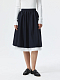 Расклешенная юбка со складками – женственная идея для повседневных образов. Плотный костюмный текстиль из поливискозы не мнется и хорошо держит форму, а подъюбник из контрастной ткани создает эффект многослойности. Притачной пояс подчеркнет линию талии.