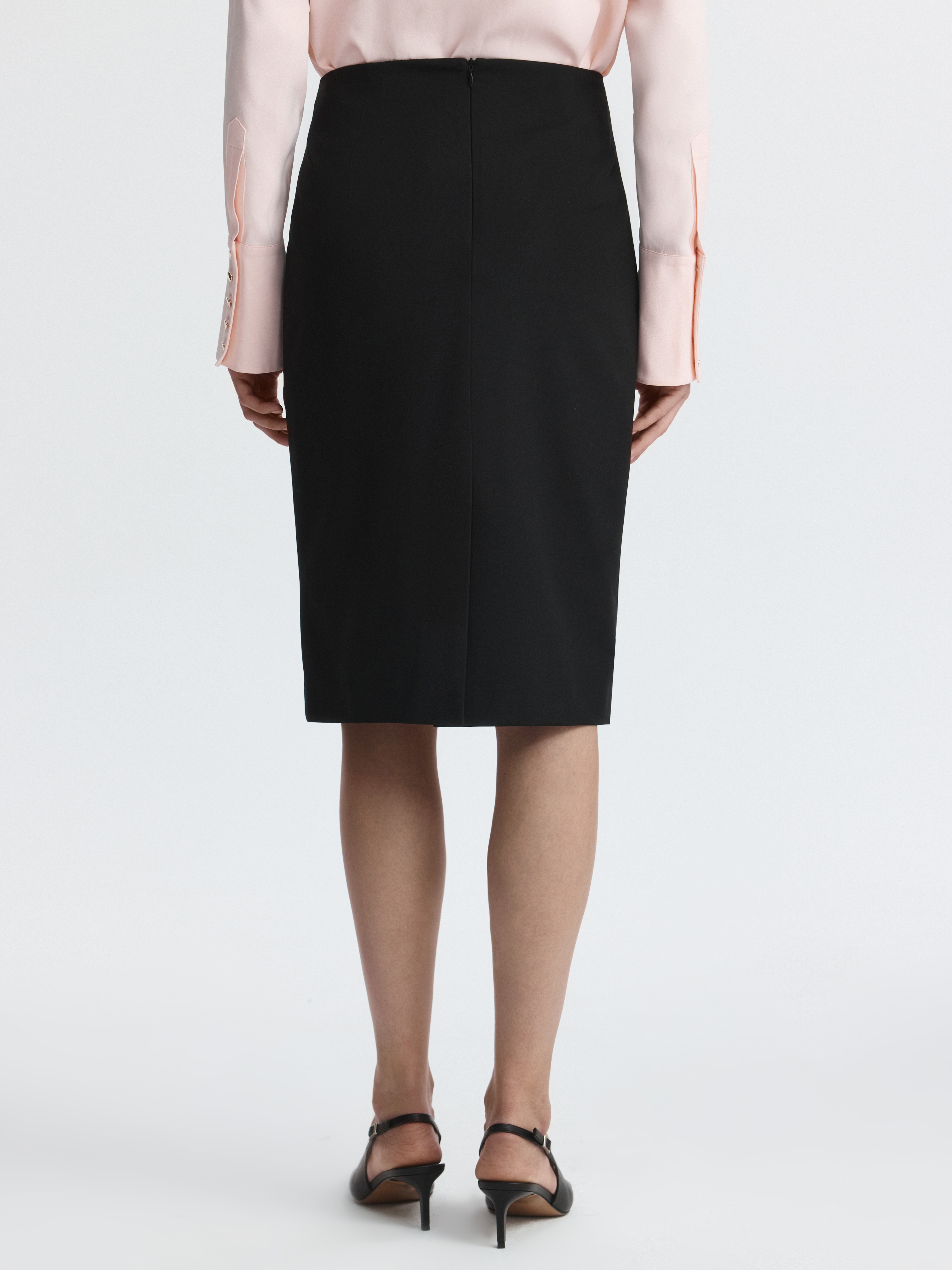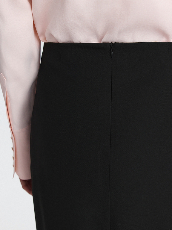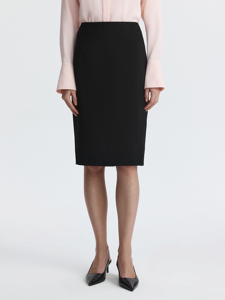 Прямая юбка в длине миди легко сочетается и с офисным гардеробом, и с вечерними образами. В меру плотный текстиль из поливискозы не тянется, подчеркивая силуэт, а благодаря гладкой подкладке комфортно прилегает к телу.