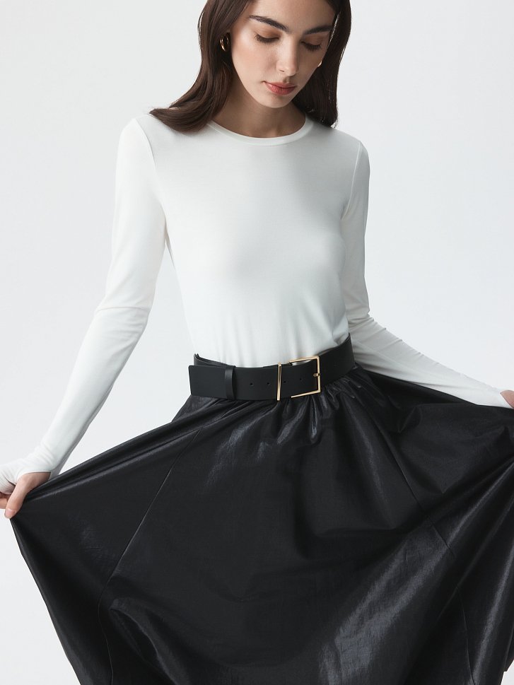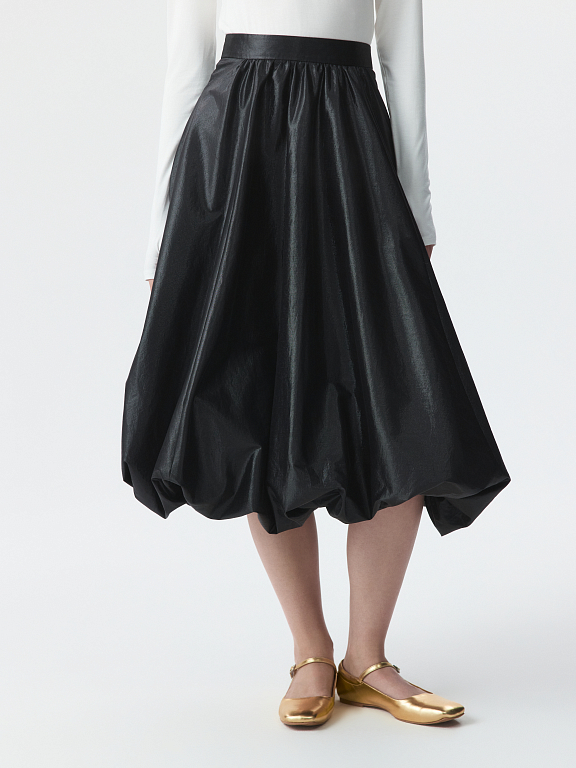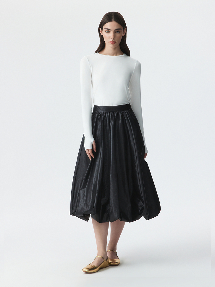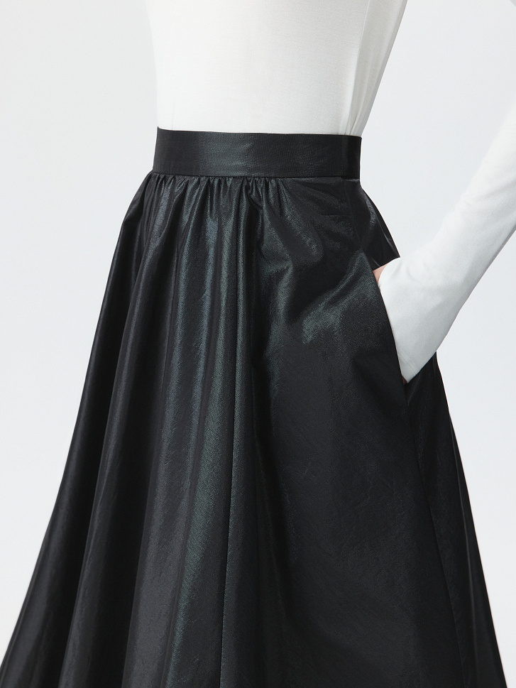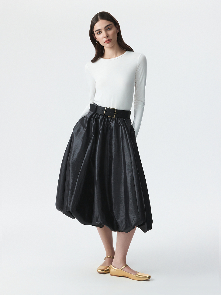 Юбка-баллон – идеальный выбор для праздничных поводов, которая станет главным акцентом в образе. Тонкий гладкий текстиль на основе хлопка хорошо держит пышную форму за счет подкладки, а блеск ткани подчеркивает торжественность момента. Боковые карманы – функциональная деталь.